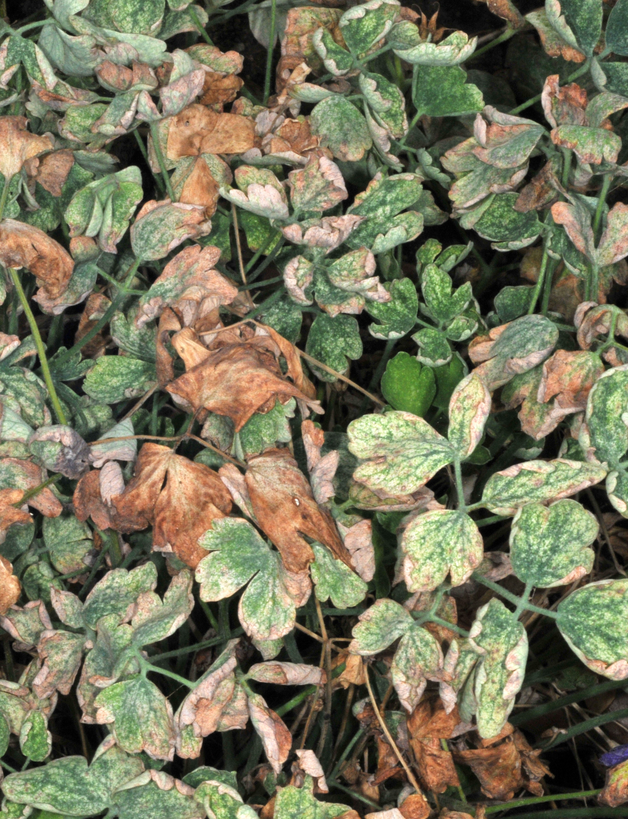 Spider mites feed on plant leaves by piercing leaf tissues and sucking the green liquid that oozes out. Leaves appear bronzed after the green color is lost from many tiny feeding spots. Heavy infestations are often associated with lots of fine webbing. The best way to confirm a spider mite infestation is to hold a sheet of white paper under a leaf and then tap the leaf sharply. If present, they will fall off and be seen as tiny specks crawling over the paper. The ability to crawl clearly distinguishes mites from the grit that can be knocked off a plant. Leaves infested with spider mites will usually have fine webbing and eggs on the leaf undersides. Although spider mite injury is superficially similar to that of lacebugs, spider mite injury can be distinguished by the presence of webs, egg shells on the mid-vein, and lack of tar spots on the leaf surface.
