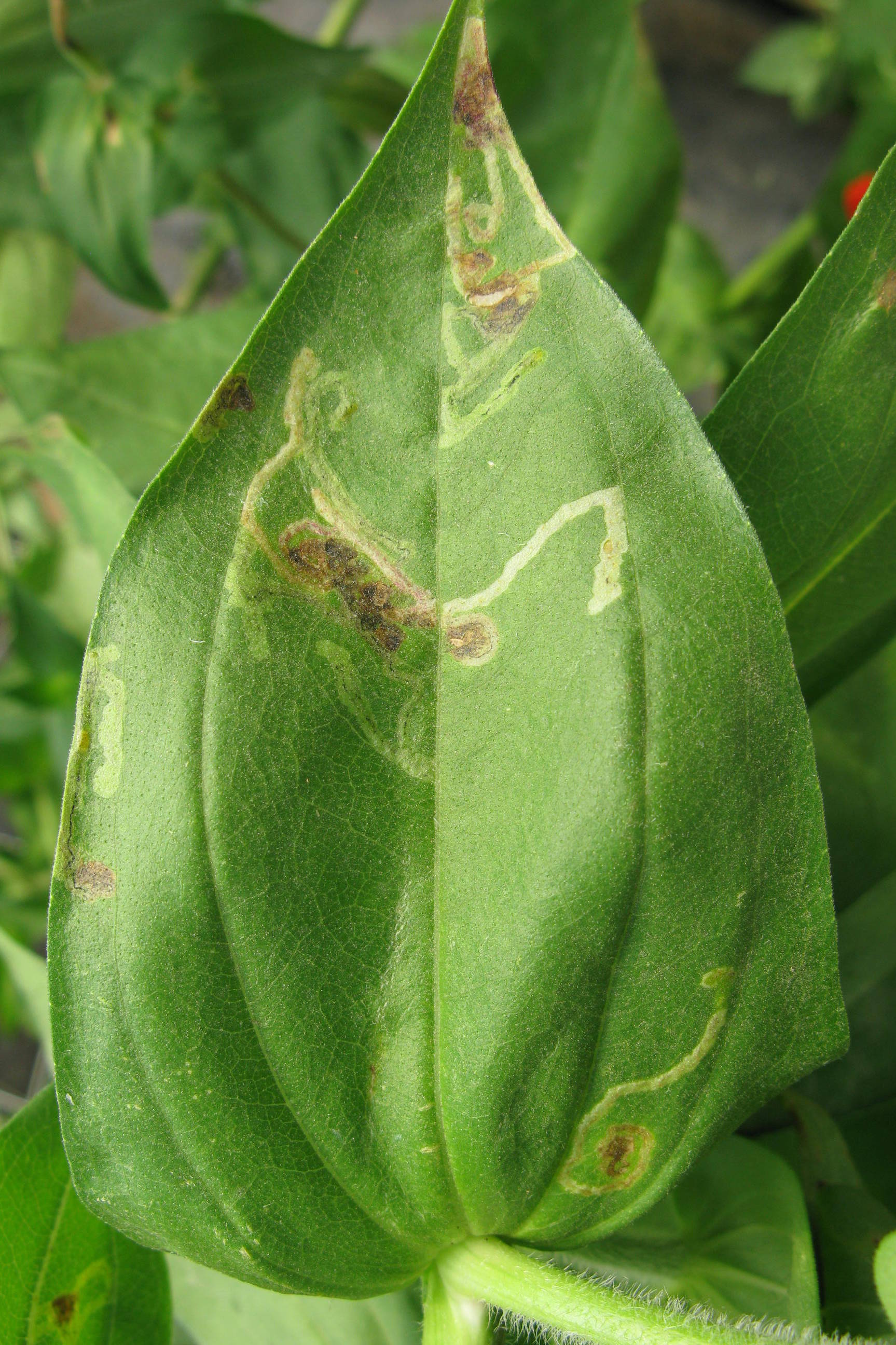 Leaves become discolored as maggots tunnel through the upper and lower leaf surfaces. Leaf mines often start in a snake-like pattern. In heavy infestations, almost all available leaf surfaces can be mined. This can cause leaves to drop and stunt growth.