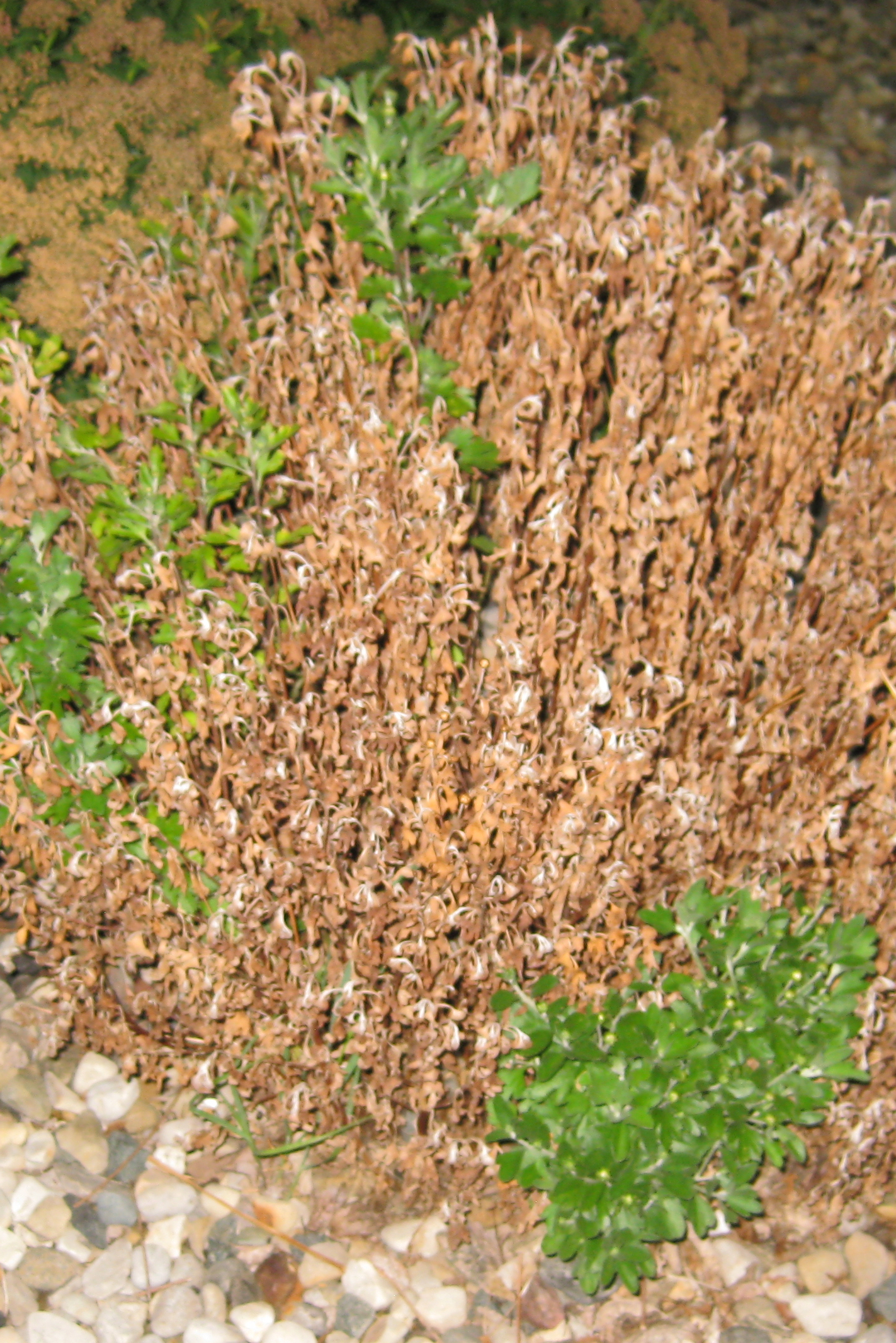 Fusarium is a common soilborne fungus. Although initial infections are usually random, spread within a landscape is most likely due to spores splashed from diseased seedlings during irrigation. Limited spread means infected plants will be very close to one another. Fusarium is present in most soils, and disease only develops when plants become stressed by drought, excess or too little fertilization, or other factors. The roots or crown are the most common sites for infection. When the plant dies, spores in the plant will become trapped in the soil, ready to infect the roots of susceptible plants.