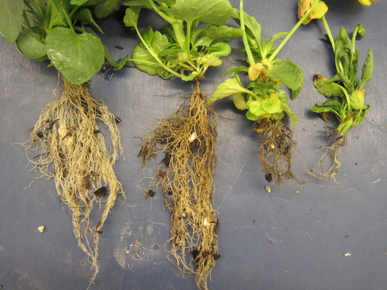 Always purchase healthy looking plants from a reputable nursery. This disease is more of a problem for seedlings grown with hard water, which is often high in salt and alkaline in pH. Plants that appear stunted or stressed in the nursery may harbor pathogens in the potting media. Always check the roots of plants before purchasing and avoid plants with discolored or blackened roots. Likewise, avoid moving stunted, stressed, or diseased plants between landscapes or parts of the landscape. This will prevent the spreading the pathogen. A few thiophanate-methyl fungicides are labeled for Thielaviopsis control in home landscapes. Fungicide will not cure infected plants, however, the life of the plant may be extended and uninfected plants protected from the disease. Regular treatment may prevent new infections on neighboring plants.