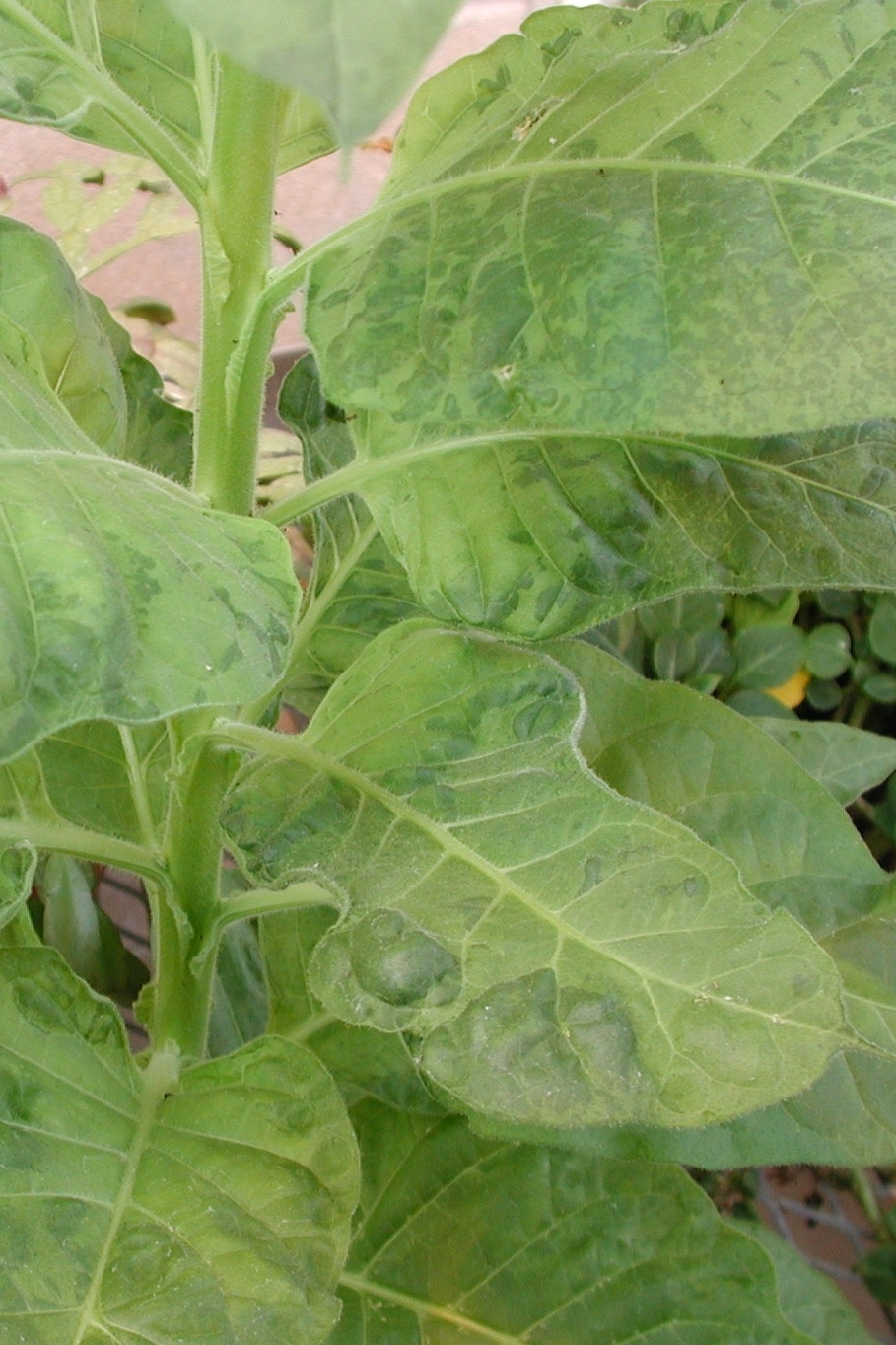 This virus is easily transmitted from infected to healthy plants, particularly by smokers, as tobacco is the primary means this virus is spread. Hands, watering hoses, pruners, weed whips, and other landscape equipment can spread the disease after contacting an infected plant. Infected plants should be removed and destroyed, immediately. Composting is not a recommended method of destruction. Gardeners who smoke should refrain from smoking during transplanting and wash their hands frequently and thoroughly with soap and water, and prior to any work in the garden.
