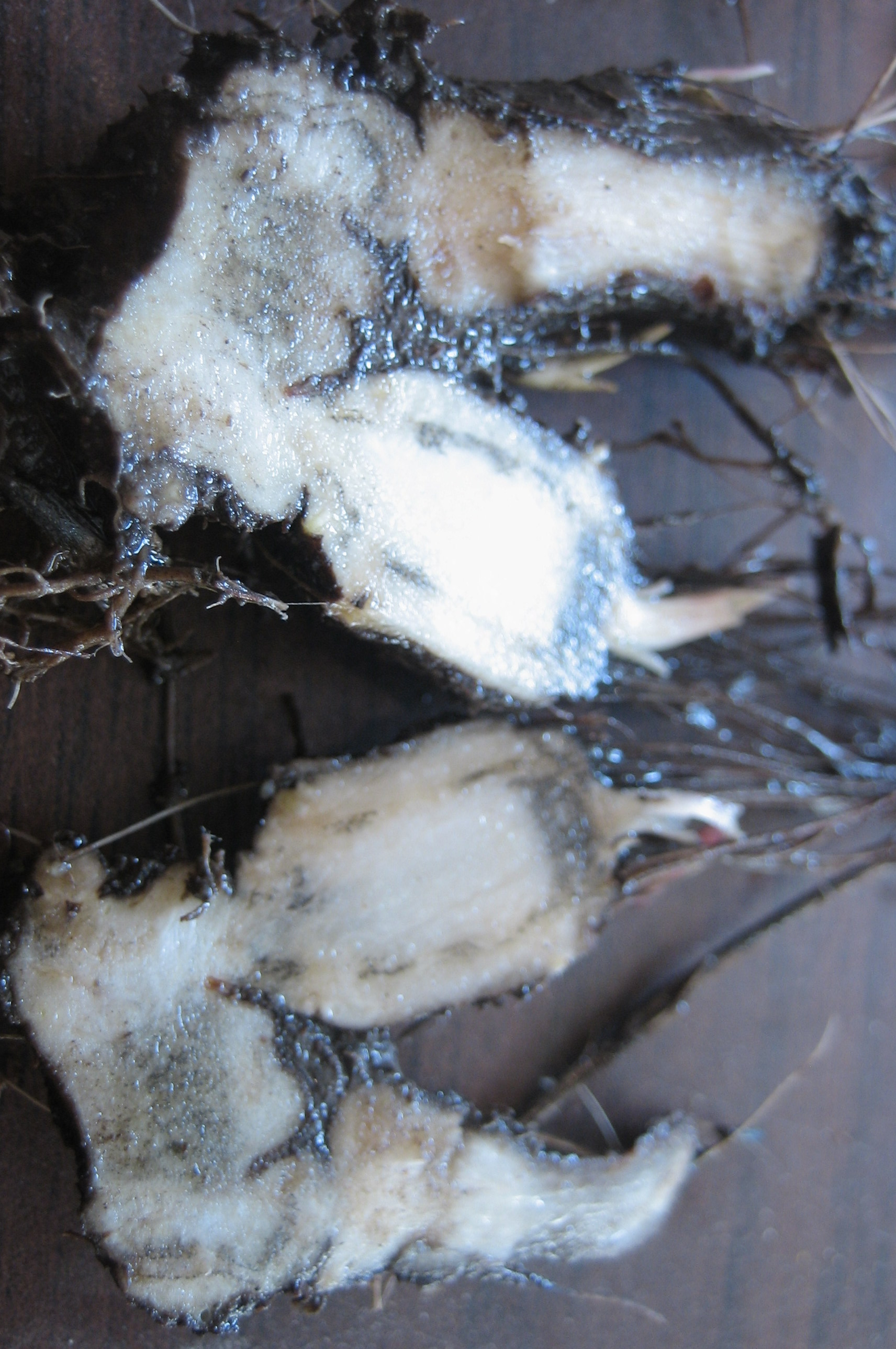 When not colonizing plants, this fungus survives in the soil. Infections occur in cool or warm weather, though symptoms may not show until summer heat stresses the plant. The fungus infects through the roots of stressed plants and colonizes the root system and stem. This reduces the plant's ability to take up water and nutrients and will eventually kill the plant.