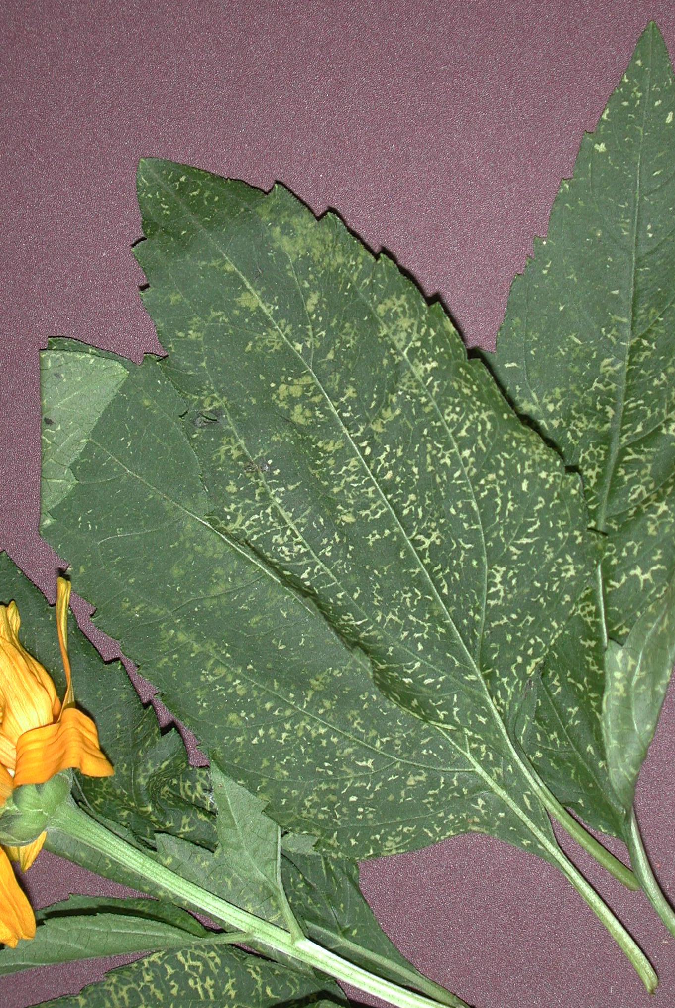 Viruses cause a diversity of symptoms on landscape plants. Yellow or red rings, yellow spots or streaks, yellowing between leaf veins, dead spots, stunting and misshapen leaves are all common symptoms. Mosaic or mottling, where areas on the leaf are spotted or speckled in both healthy green tissue and yellow spots, is common with some virus/host combinations. Symptoms and host range of viruses overlap and there are no signs of the pathogen. Plant disease diagnostic labs can test for the presence of the most detrimental viruses.
