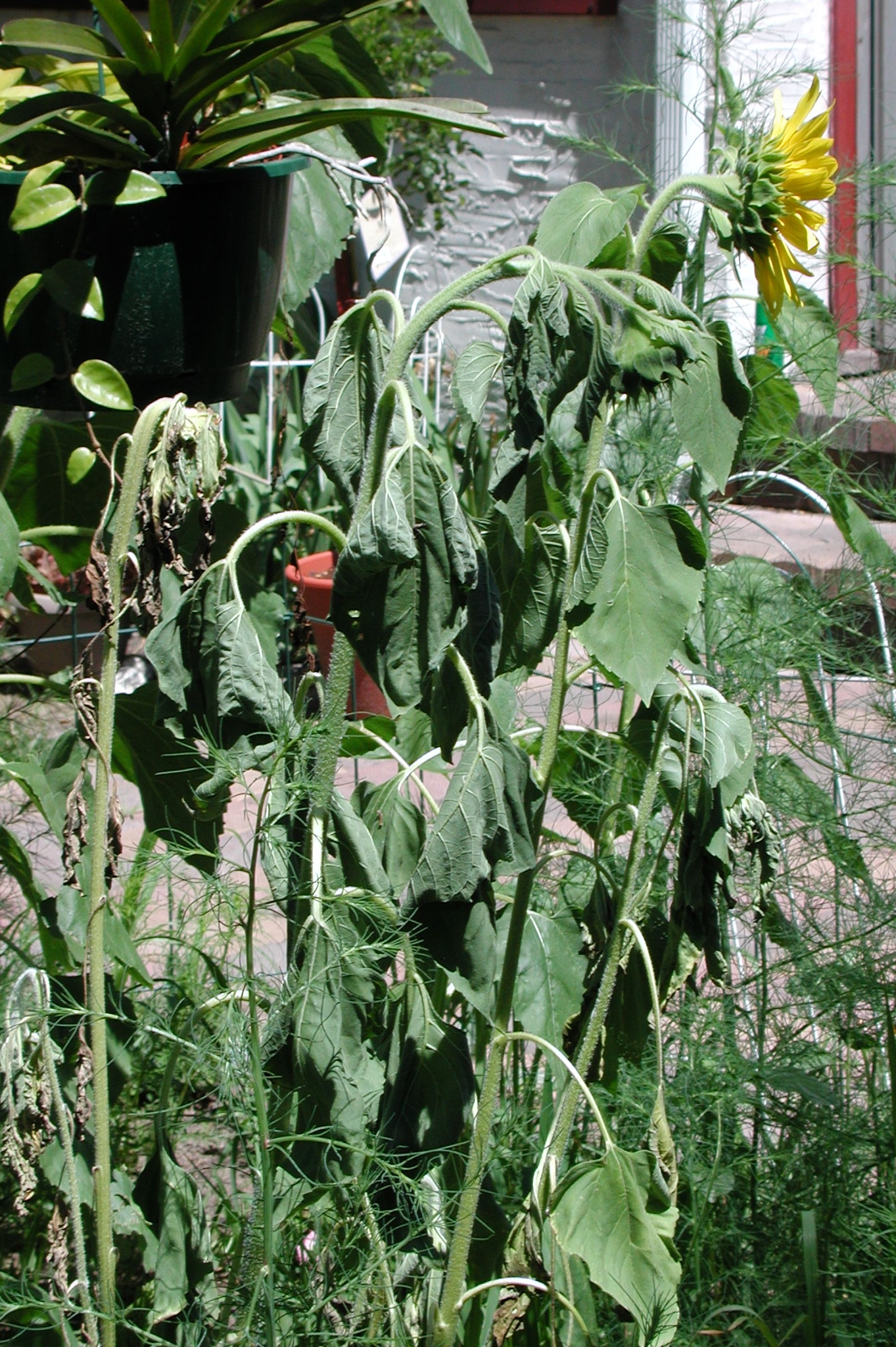 Wilt is the drooping of leaves and stems due to a lack of water. Wilt can be caused by drought, injury, insect damage, or disease. Wilting can even be caused by flooding if the roots remained submerged for too long and die. If the cause is not corrected, drooping leaves may begin to die from the tip and edges. Eventually, the affected plant or section of the plant will die.