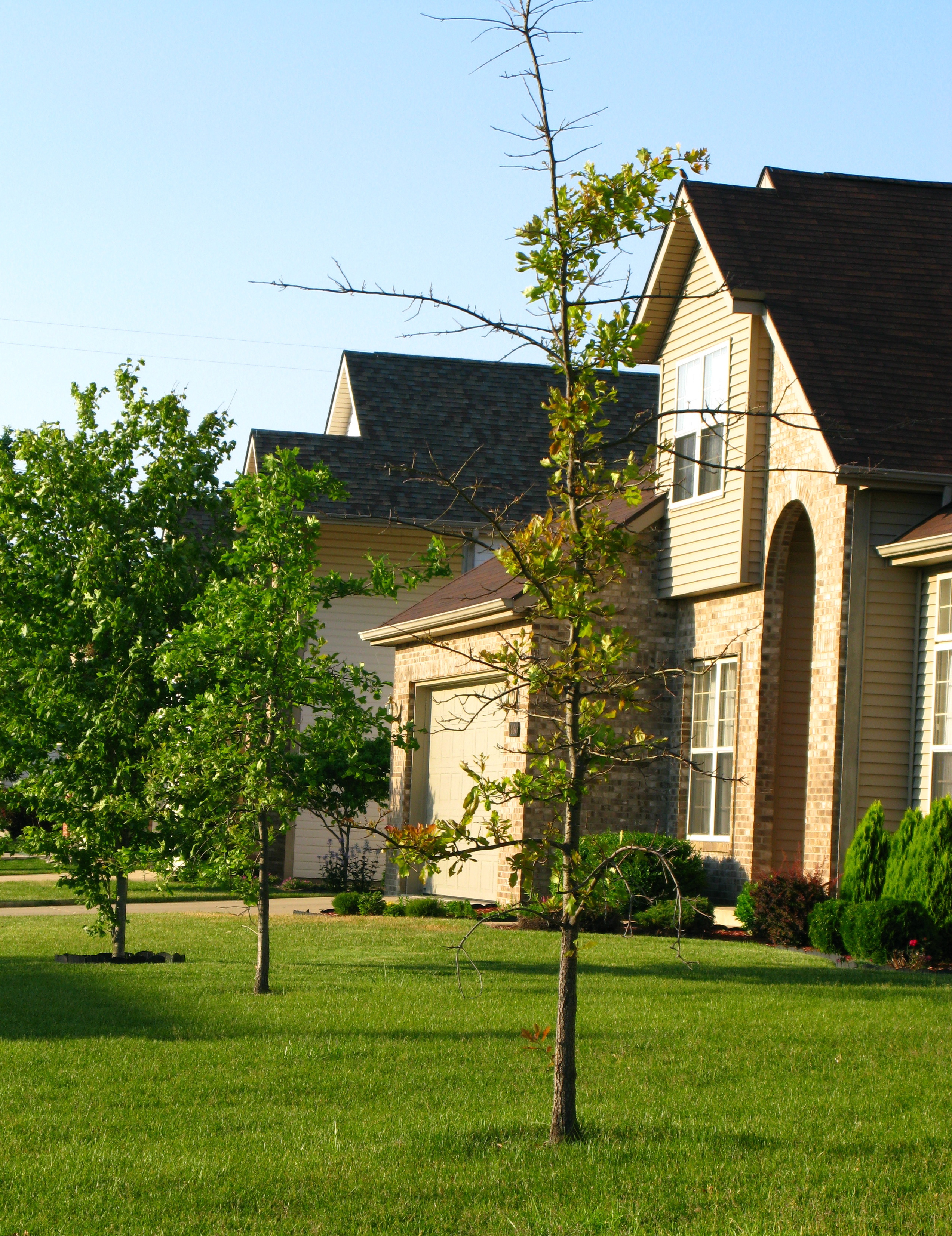 Always select trees that will thrive in the selected location, taking care to minimize external stresses by providing the needed space to grow, minimizing the risk for compaction due to construction or hardscape, surrounding use, etc. For trees already experiencing decline, identify and relieve as many stresses as possible. Water trees thoroughly during periods or drought; mulching around the base of trees will decrease water loss from the soil. Lightly fertilize trees as needed.Tree decline is complex of interacting factors and require that each minor factor be addressed to avoid the additive effect that results in decline