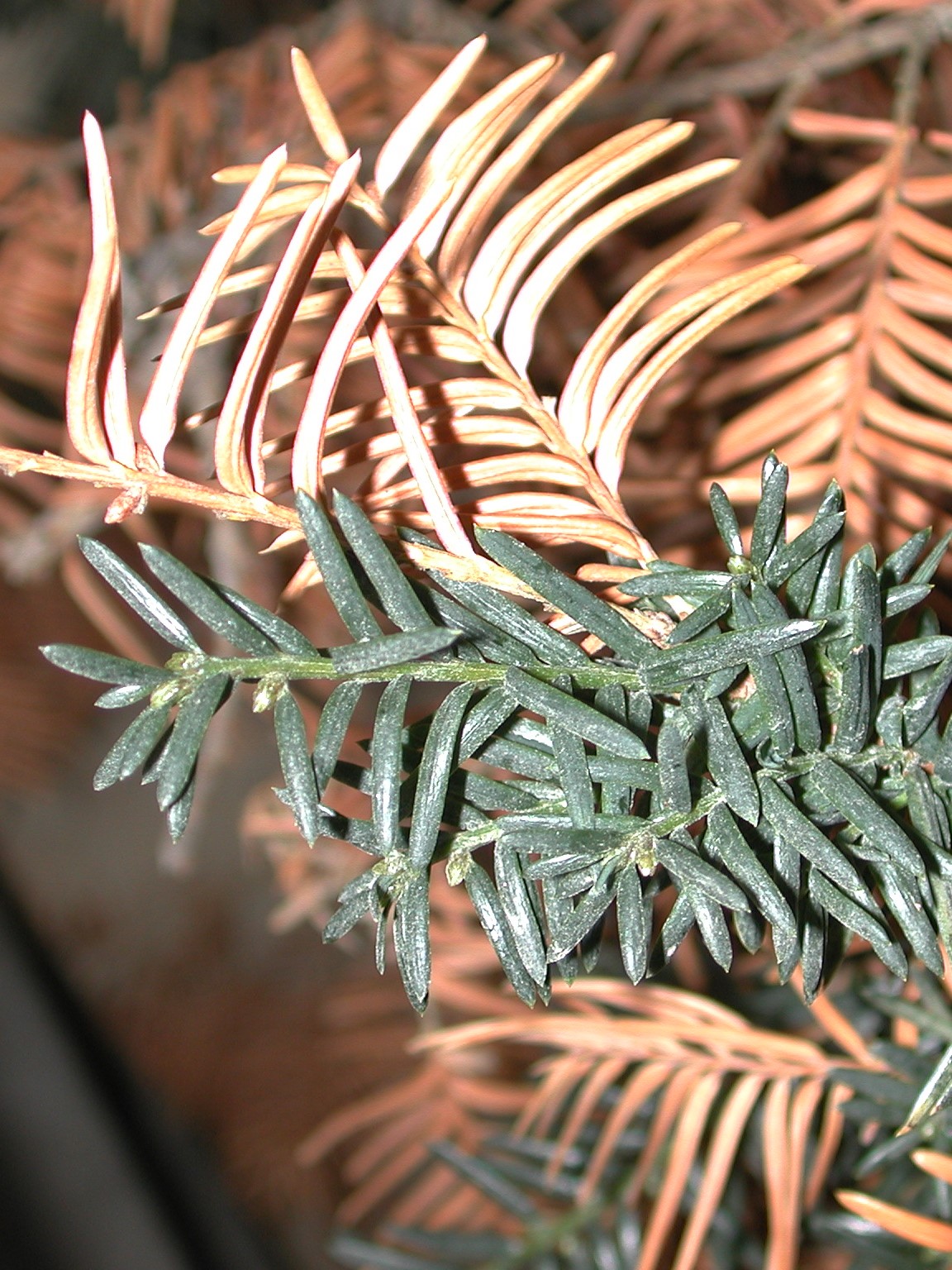 - Yellowing or early fall color