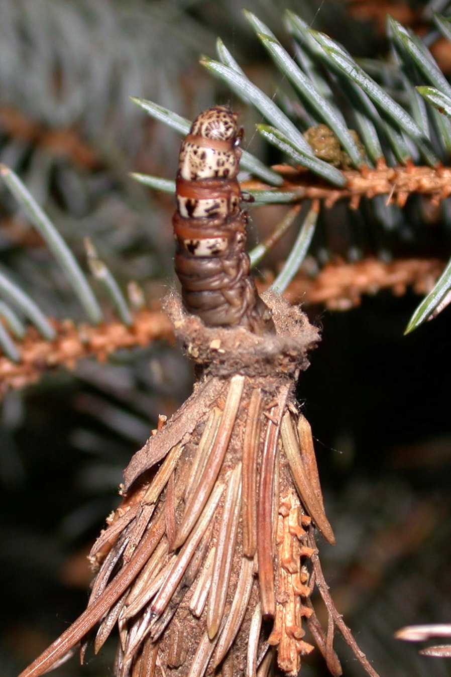 - Caterpillars in silken bags ("cones")