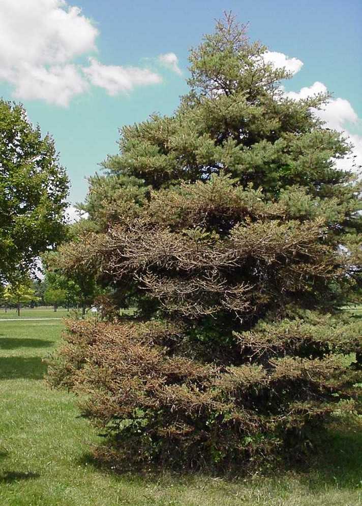Bagworms tend to be a problem on trees that are isolated or in urban settings. When bags are found in the tree, simply pick the bagworms off and drown them in a bucket of soapy water. This method is most effective before eggs hatch out of the bags in June. When there are too many bags to pick, insecticides may be used to kill the bagworms. Pesticides are most effective before the bagworms are less than an inch and a half in length. To kill caterpillars without creating other pest problems (spider mites, scale insects) it is best to use biorational pesticides (spinosad, Bacillus thuringensis). Caterpillars may have to feed on treated leaves for 1-2 days to get a lethal dose of these materials. When pests are discovered late in season and extensive damage is present, it may be necessary to spray a rescue material to kill caterpillars quickly. Rescue treatments include Sevin(carbaryl) or a pyrethroid (eg. acetamiprid, bifenthrin, cyfluthrin, lambda-cyahalothrin,permethrin, resmethrin). Dinotefuran can be effective on small shrubs when applied to the soil in early May, three weeks before eggs hatch. To protect bees, do not apply foliar insecticides when bees are flying to flowers and avoid using soil insecticides like imidacloprid, and dinotefuran on plants prior to or during flower production.