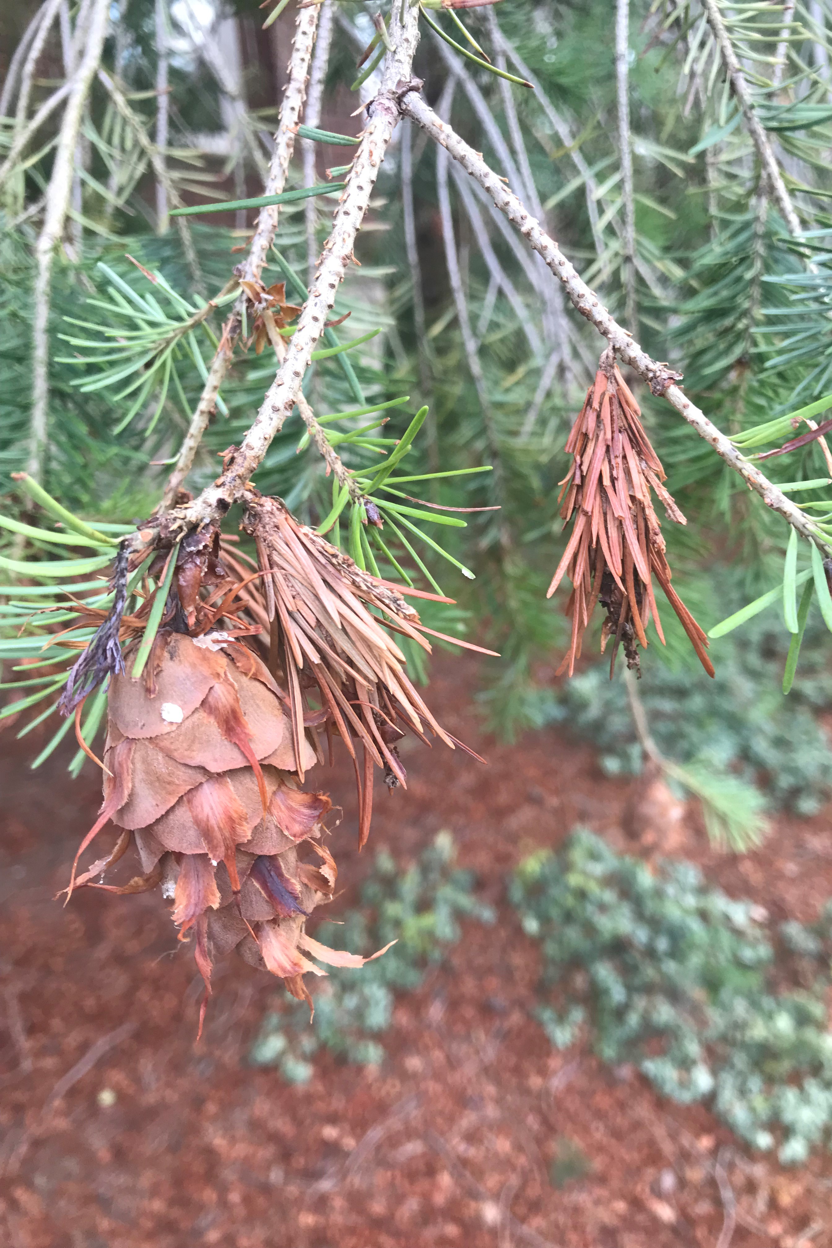 - "Cones" covered by cut leaf bits