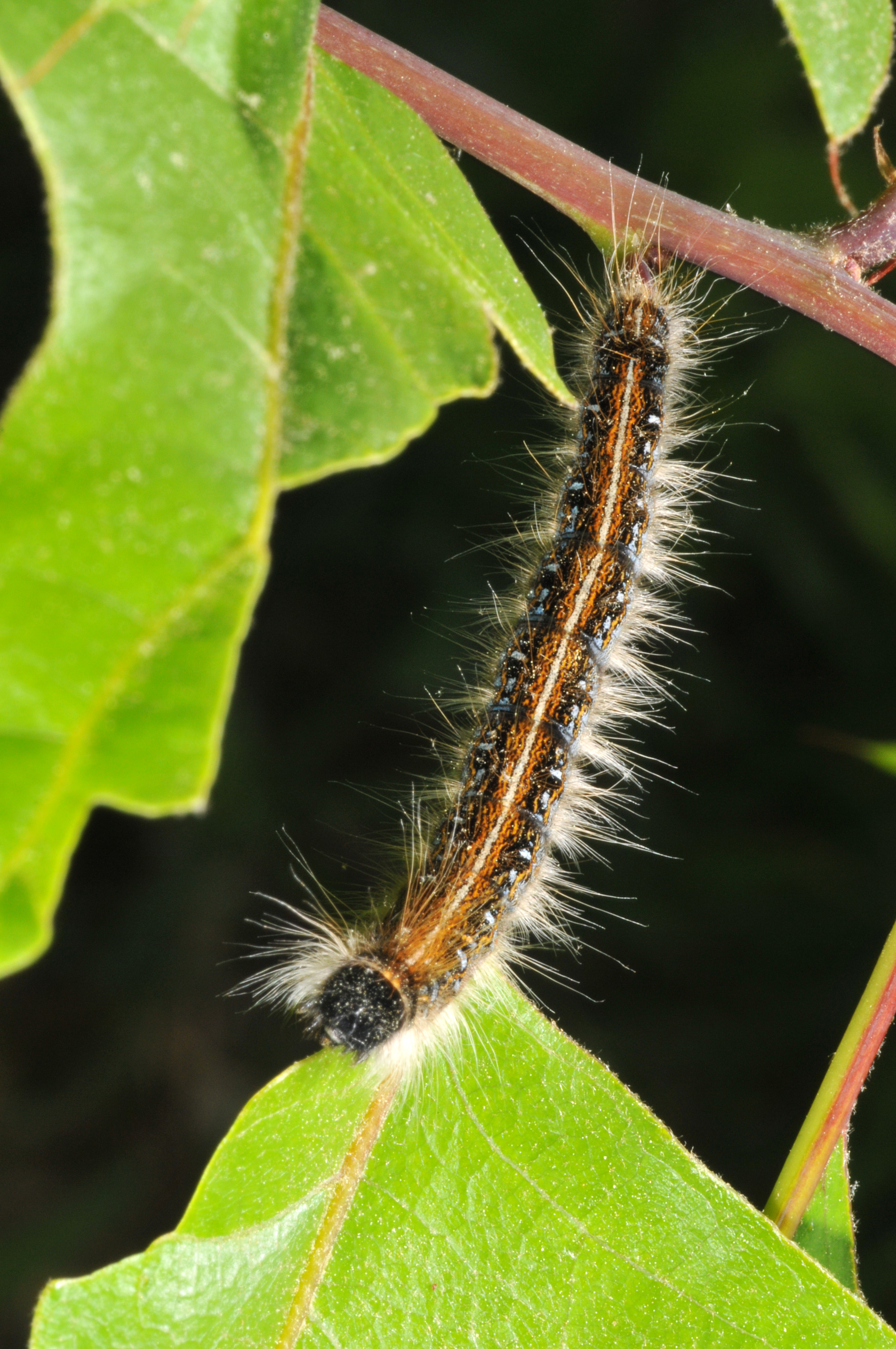 - Hairy caterpillars with white stripe