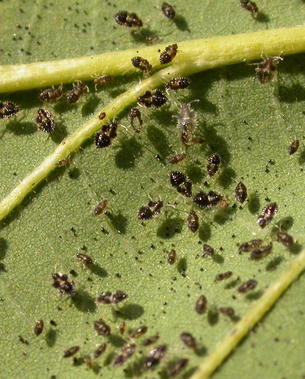 Lacebugs injure leaves and suck out green liquid from leaf undersides and leave behind white spots. The accumulation of white feeding spots on leaves can give them a bleached white appearance or cause them to drop prematurely. Lacebugs leave black spots or tar-like excrement on leaves as they feed. Black oval eggs laid into the leaf tissue are visible to the naked eye. Adults have clear, lace-like flat wings. The immature stages (nymphs) are black and spiny. Though damage may superficially resemble spider mites, no webs are present on leaf undersides.