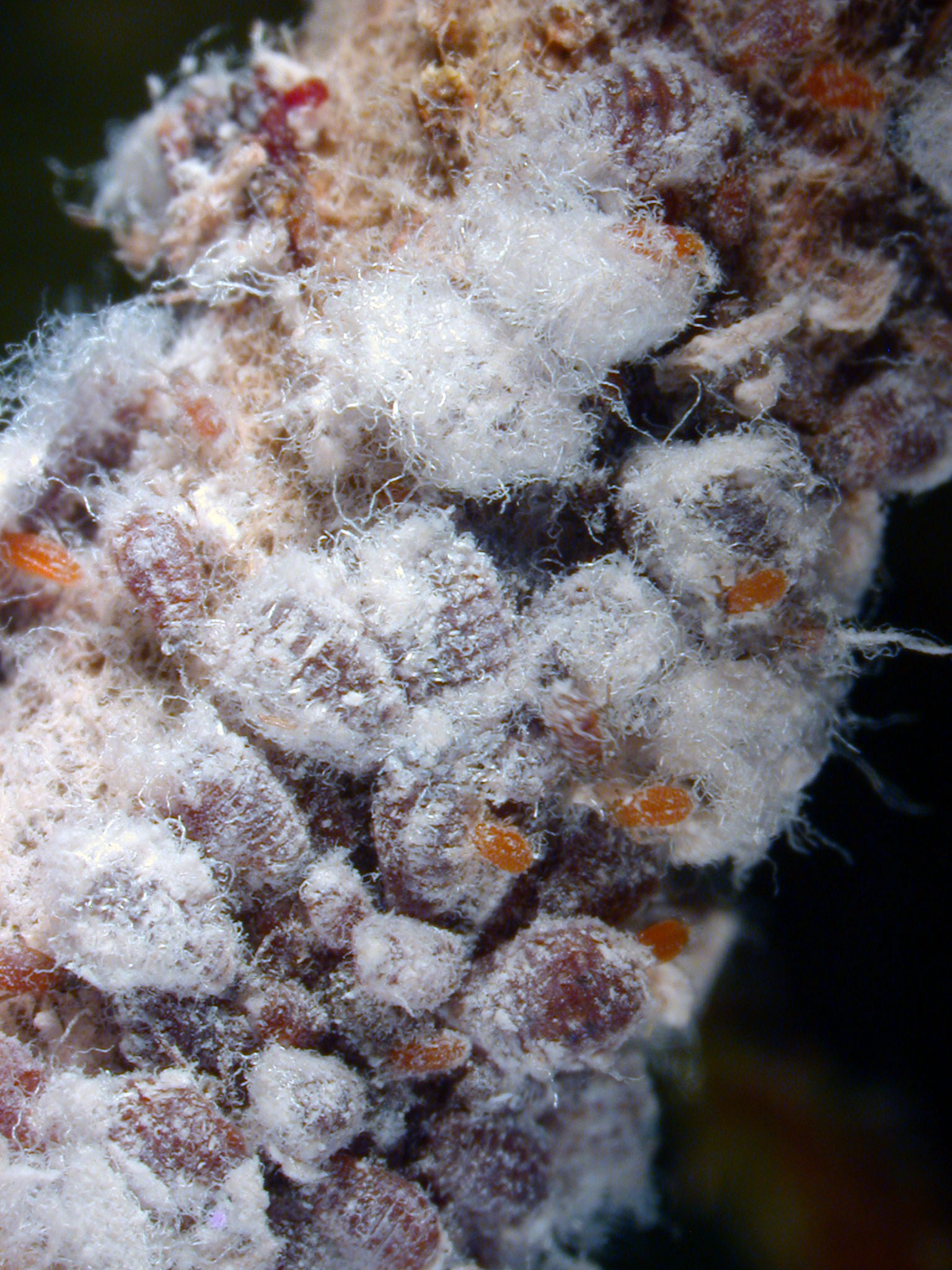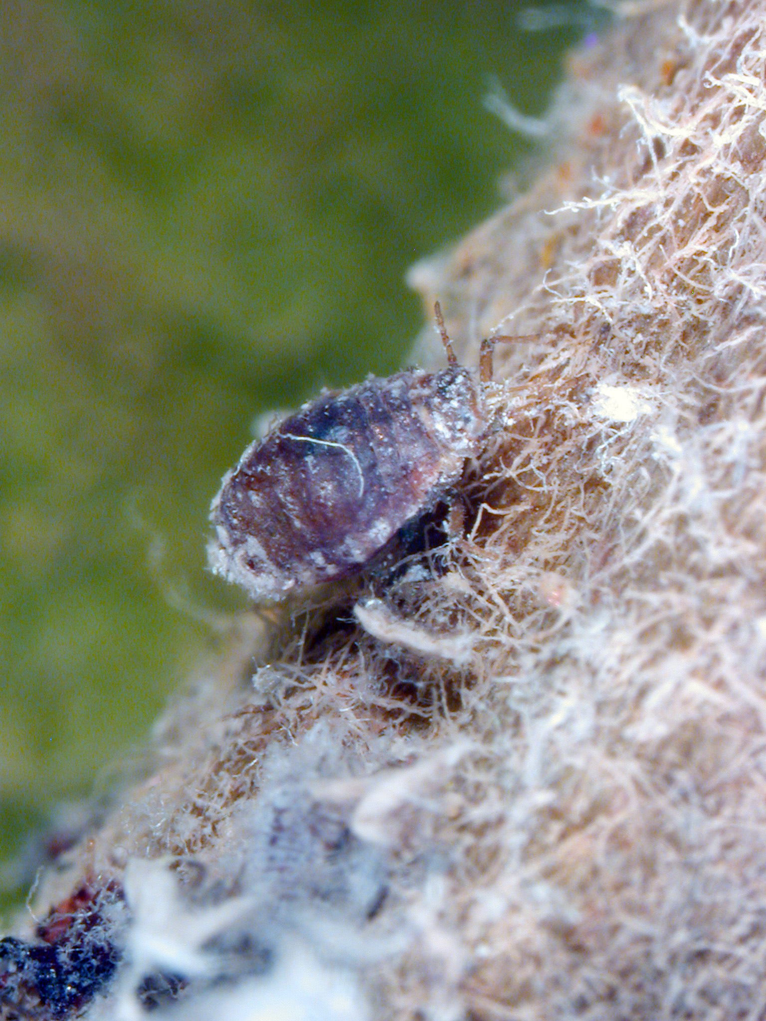 Woolly aphids usually overwinter underground in a wingless immature stage called a nymph. They have complex life cycles and may have more than one host plant. They can also winter above ground in the crevices of bark on trees in the egg stage. Unmated females give birth to live crawlers in the spring which are highly active and disperse throughout the tree. Winged males emerge and mate with females in the fall.