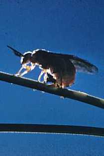 Sawflies are stingless wasps that lay eggs in leaf tissue with a saw-like tail. Adults lay eggs in the fall that winter in needles surrounded by yellow halos. Eggs hatch in April into worm-like larvae when Bradford Callery pears are in bloom and begin to feed on foliage. After larvae become about 1" long, larvae make brown bullet shaped cocoons (1/2" long) that can be found along the trunk or on the ground. There is one generation of sawflies each year.