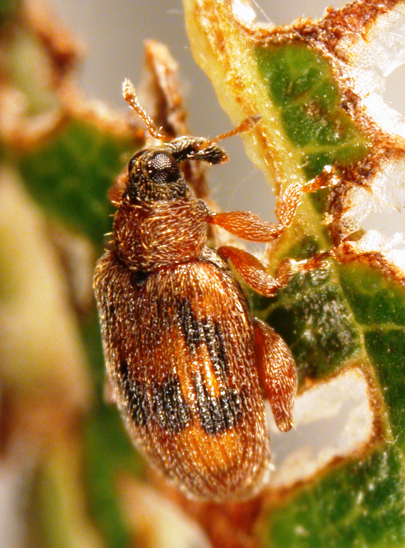 - Small, oval-shaped beetle