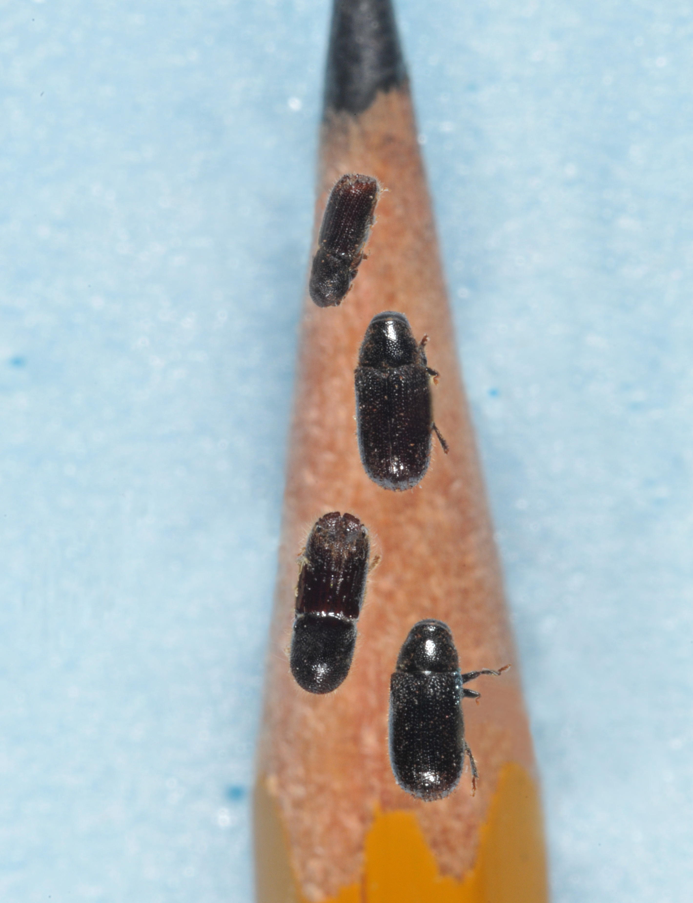 - Small beetles under bark