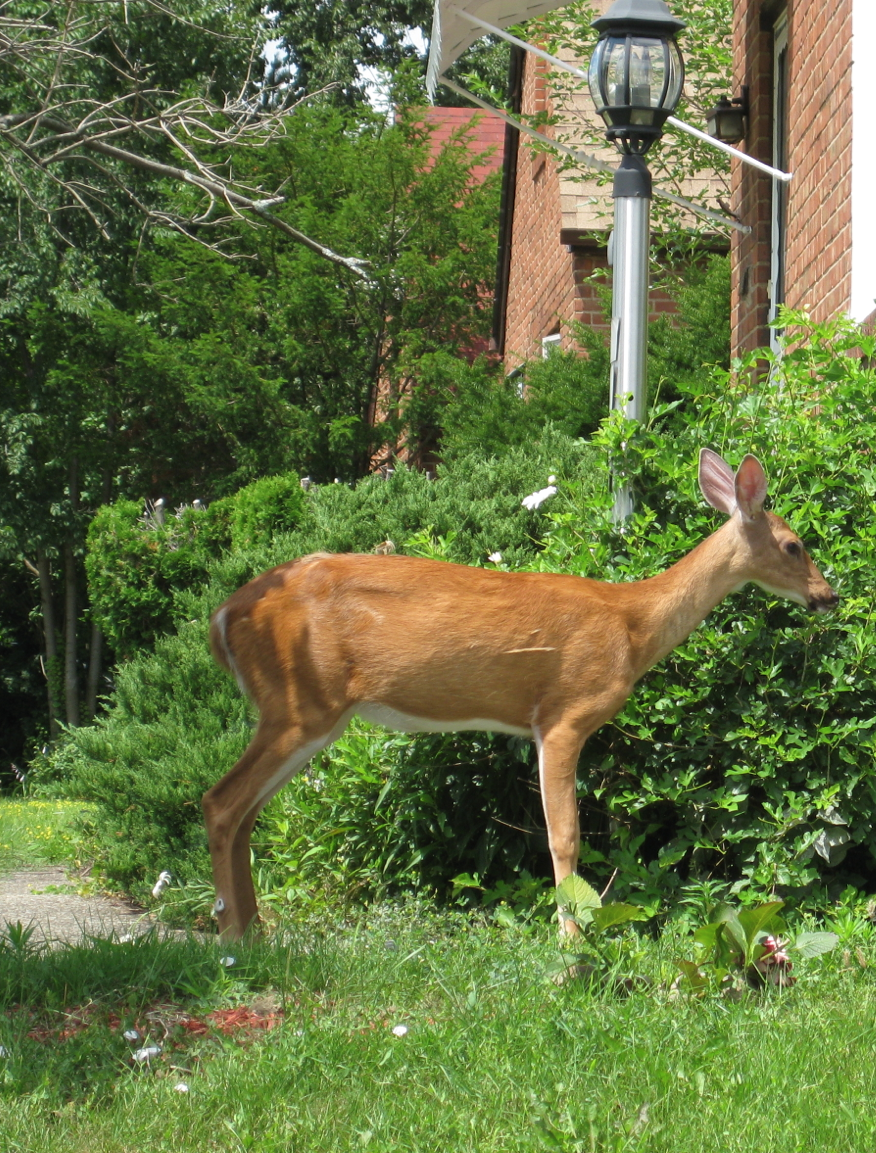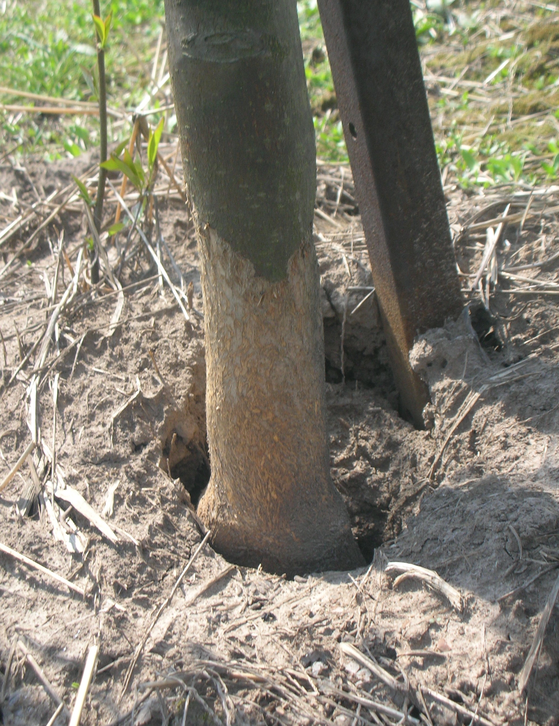 Use fencing or tree guards to protect susceptible trees from destructive animals. Avoid tight fitting guards because they can increase damage caused by boring insects and canker pathogens. Products containing putrescent egg solids are effective in repelling deer for a short time but should not be used where people may be exposed to the terrible smell. Remove weeds and keep grass mowed low; this limits hiding places for small animals and a food source for deer. Maintain mulch levels at 2-3 inches and avoid excessive mulch levels and volcano mulching which provides habitat for rodents.