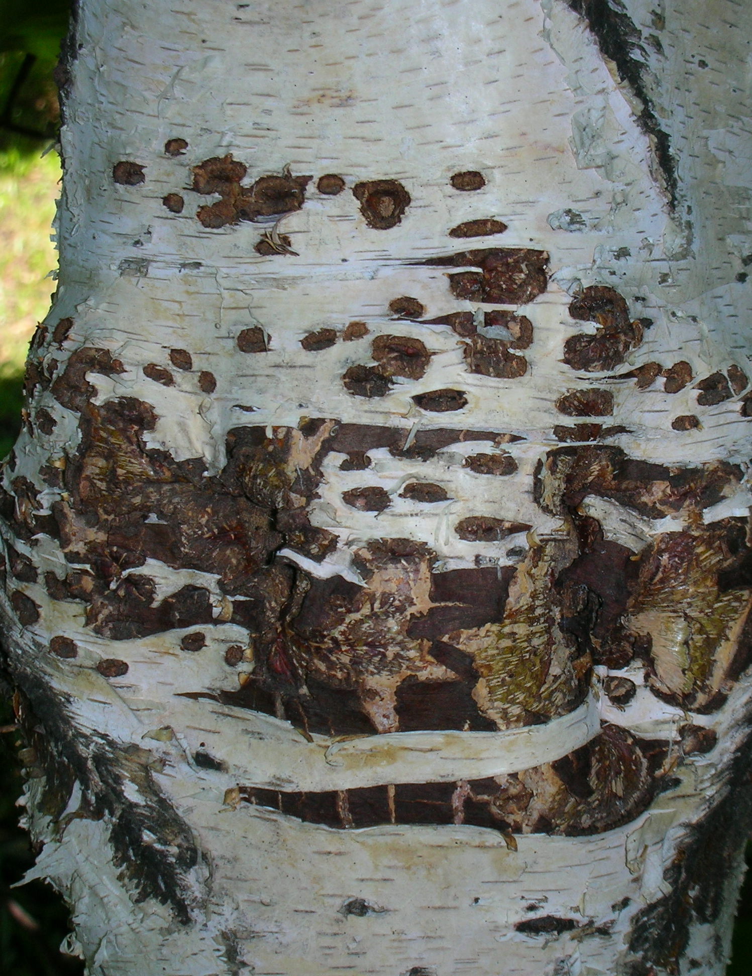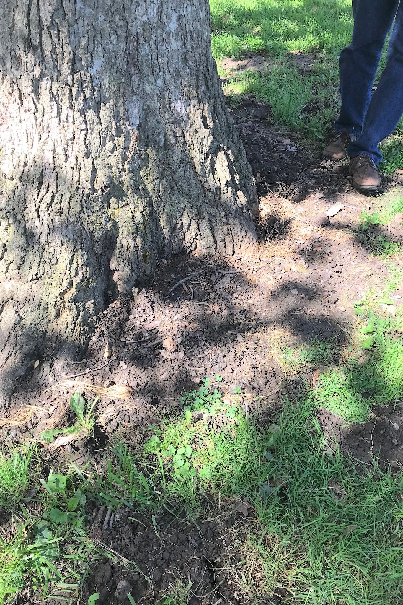 In the spring, deer feed on young, succulent tree leaves. In the summer, male deer scrape bark from trees using their antlers. Evergreen trees such as arborvitae are highly susceptible to deer browse in the winter when there is little else to eat. Other examples of animal damage include holes in the bark from sapsucker and woodpecker feeding, branch bark peeled back by squirrels, and girdling (a chewed ring of bark and wood around the trunk) caused by rabbits, mice and voles.
