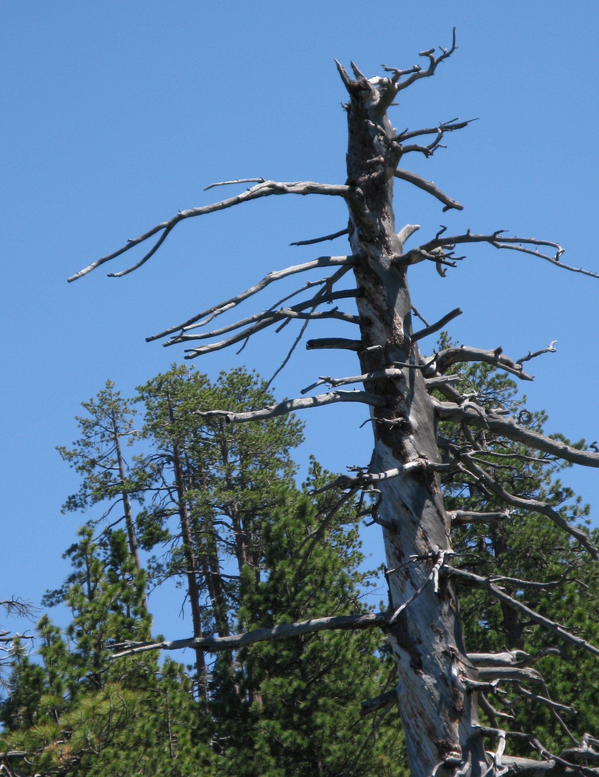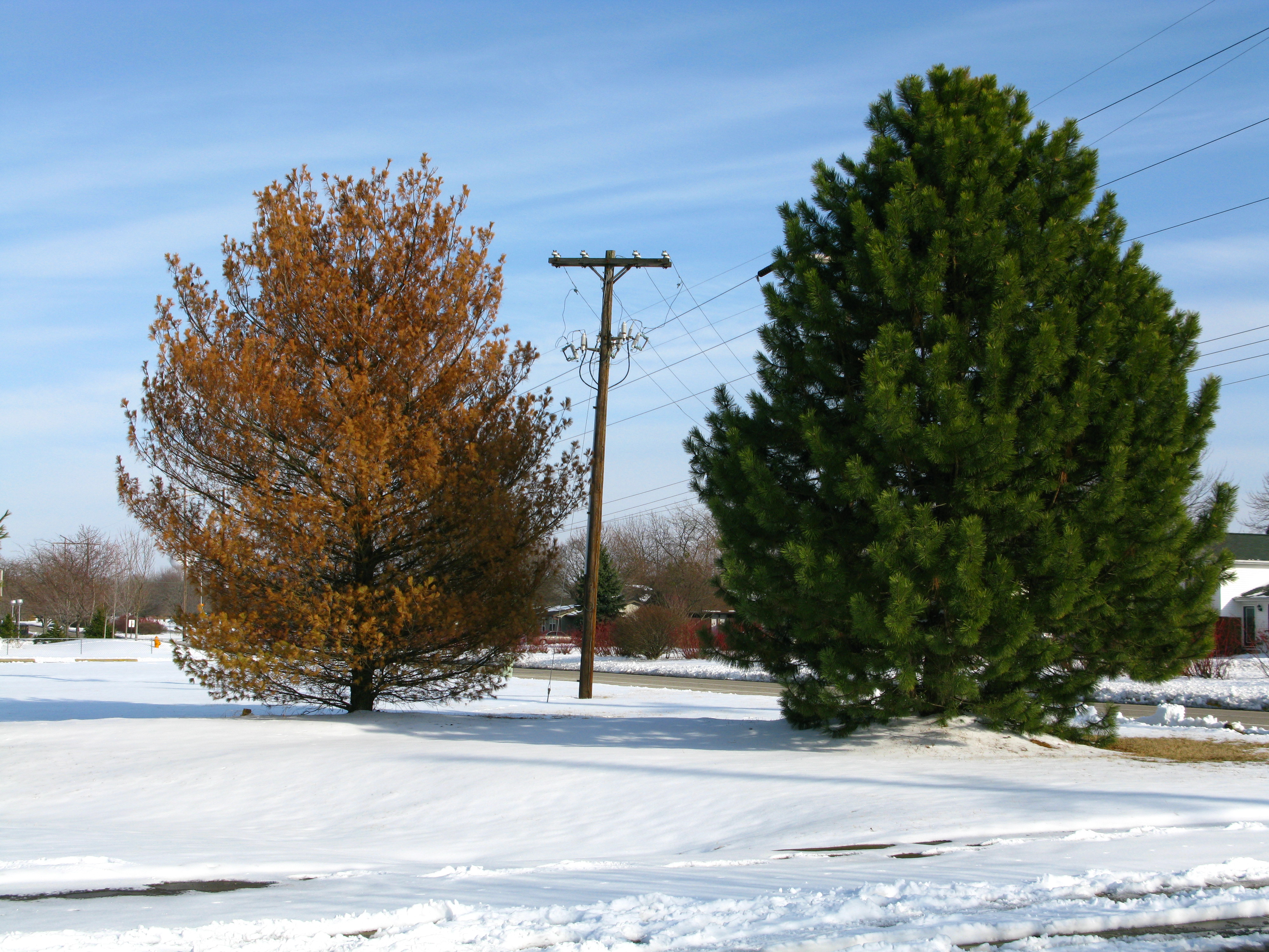 Death is a term more readily understood in the animal kingdom than the plant kingdom. Leaves, branches, stems and roots can all be dead, yet a tree can persist, and even recover, unless of course, most of the tree is dead. Trees can die quickly, due to herbicides, lightning and some diseases that prevent a tree from making food through photosynthesis, or moving water from roots to leaves. Trees can also decline slowly, due poor site, old age, insects or pathogens.