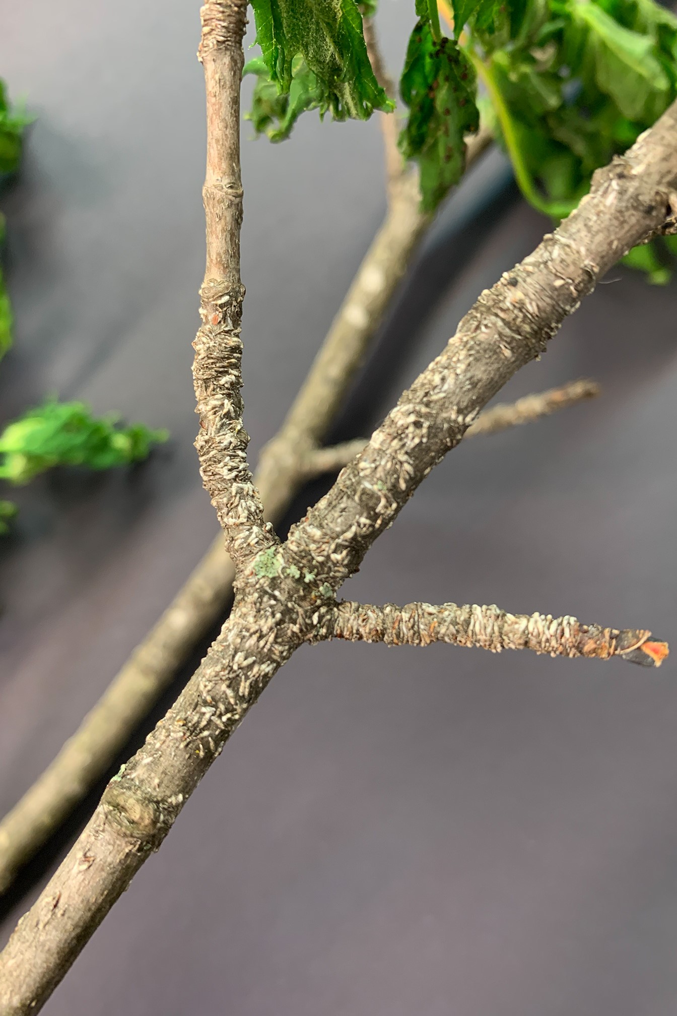 - Thin elongate bumps on twigs