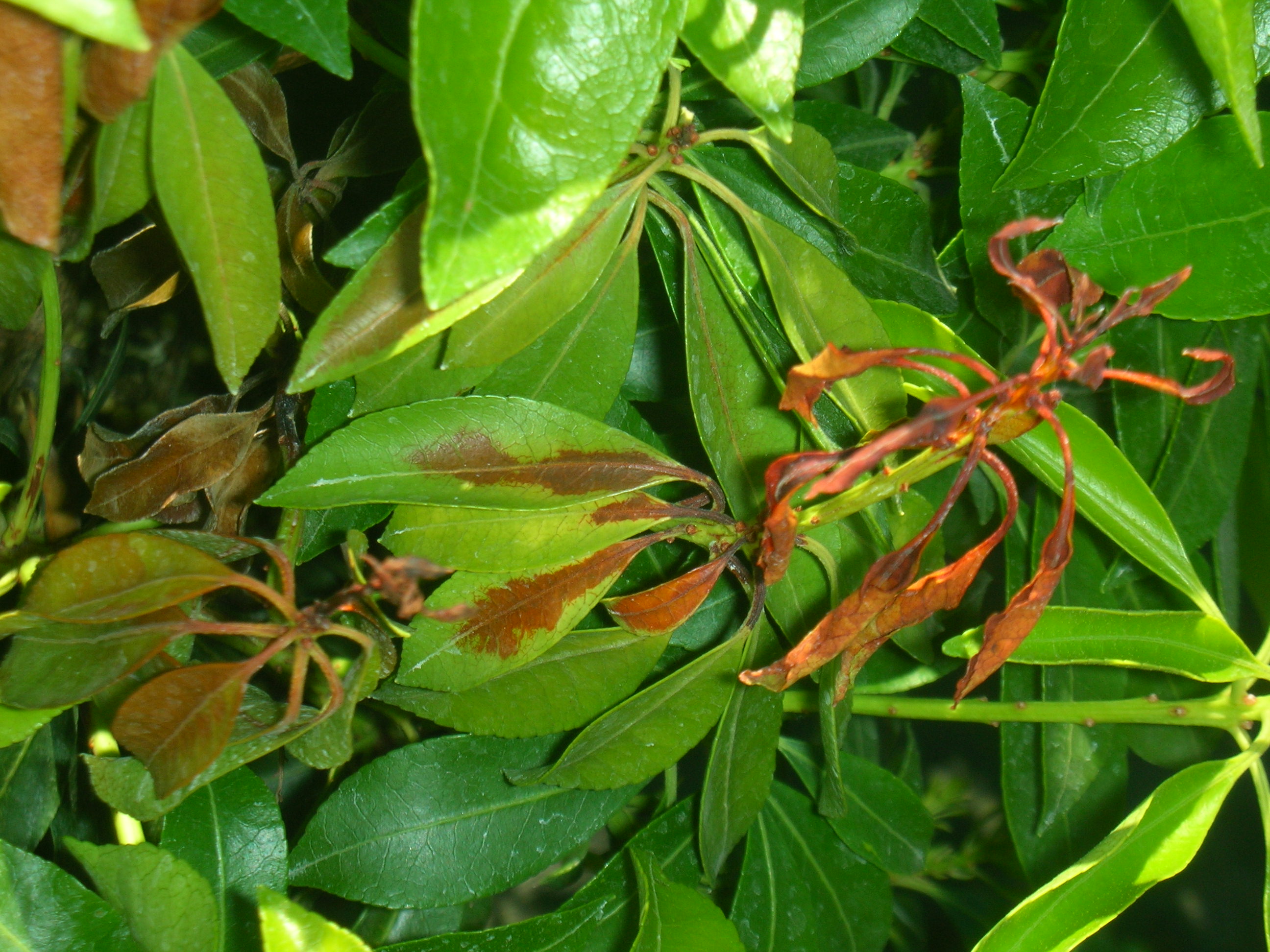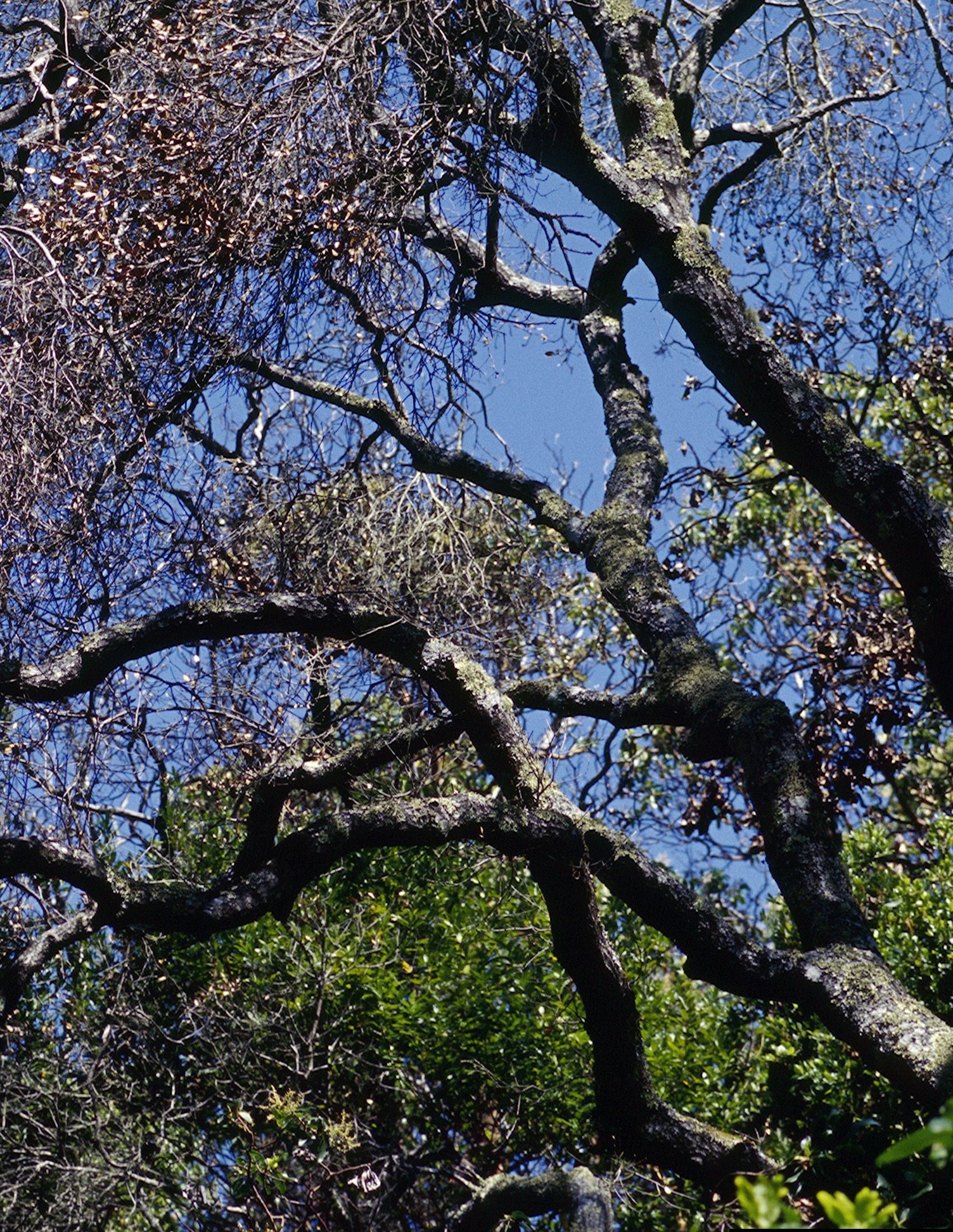 Sudden oak death, more correctly called Ramorum canker and blight, has two names that refer to the two different symptoms that result: On oak and tanoak (and viburnum), plants die, sometimes quite quickly. On most other understory shrubs, like azalea, rhododendron, camellia, lilac, pieris, and kalmia, the disease is foliar problem and twig blight. Unfortunately, when the pathogen attacks these plants, it is able to reproduce and create tremendous amounts of spores, allowing the disease to spread to oaks, tanoaks, and conifers, killing them. The symptoms of the pathogen can be readily confused with other Phytophthora pathogens, so laboratory diagnosis is essential. Submit samples for diagnosis if sudden oak death is the suspected cause of disease. Contact a plant disease diagnostic lab for information on submitting samples. Keep in mind that many common landscape problems resemble P. ramorum infections, including boring insects, Armillaria rot, and other Phytophthora root and crown rots.
