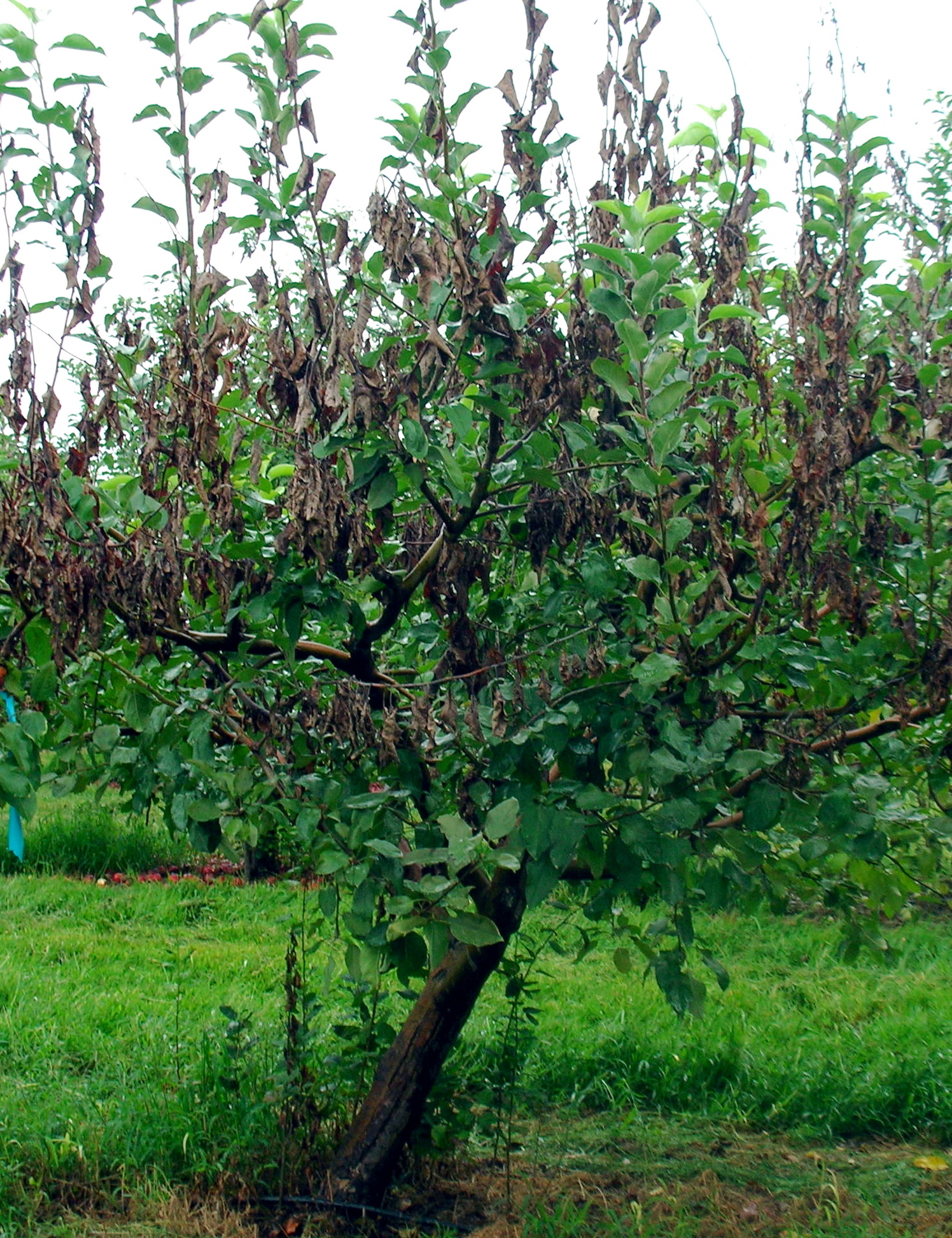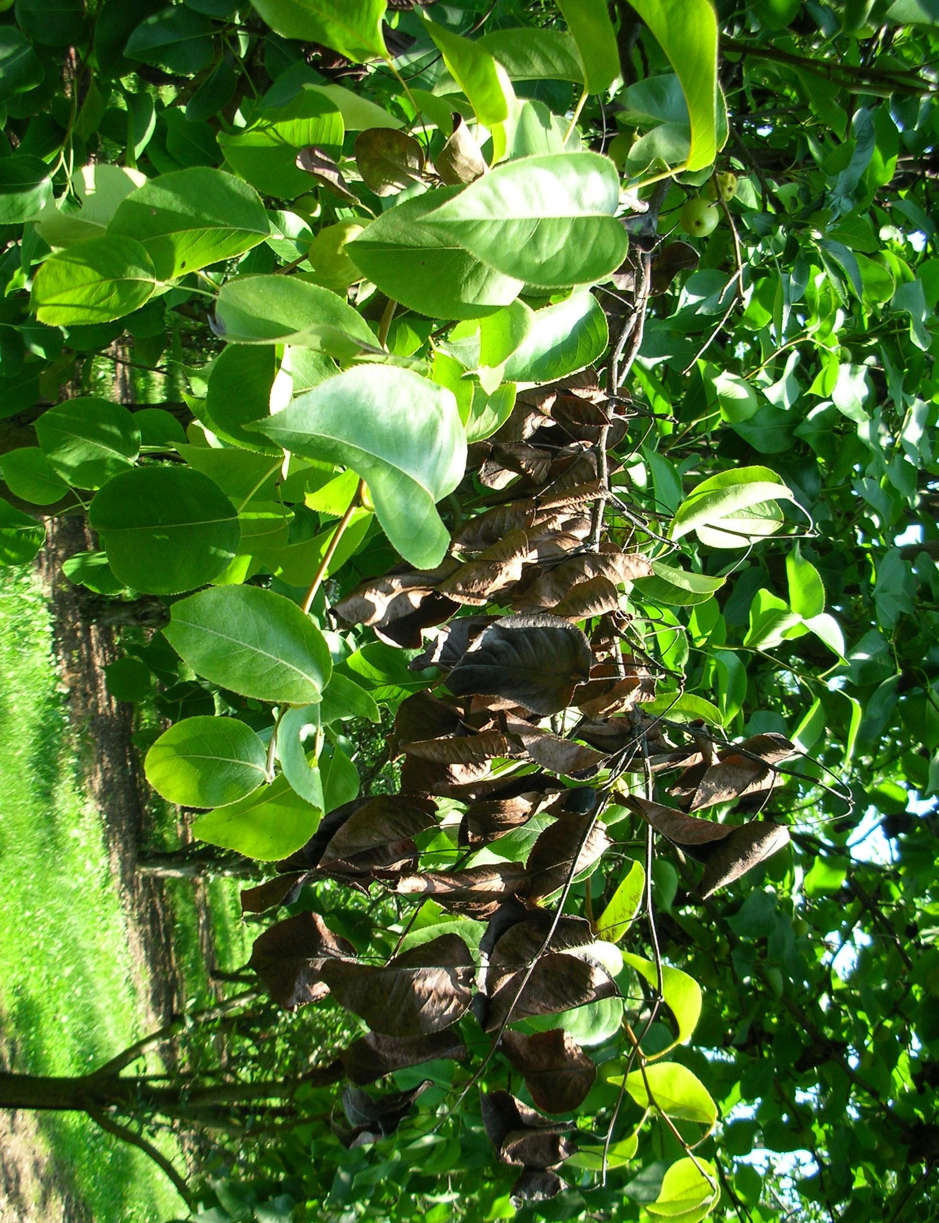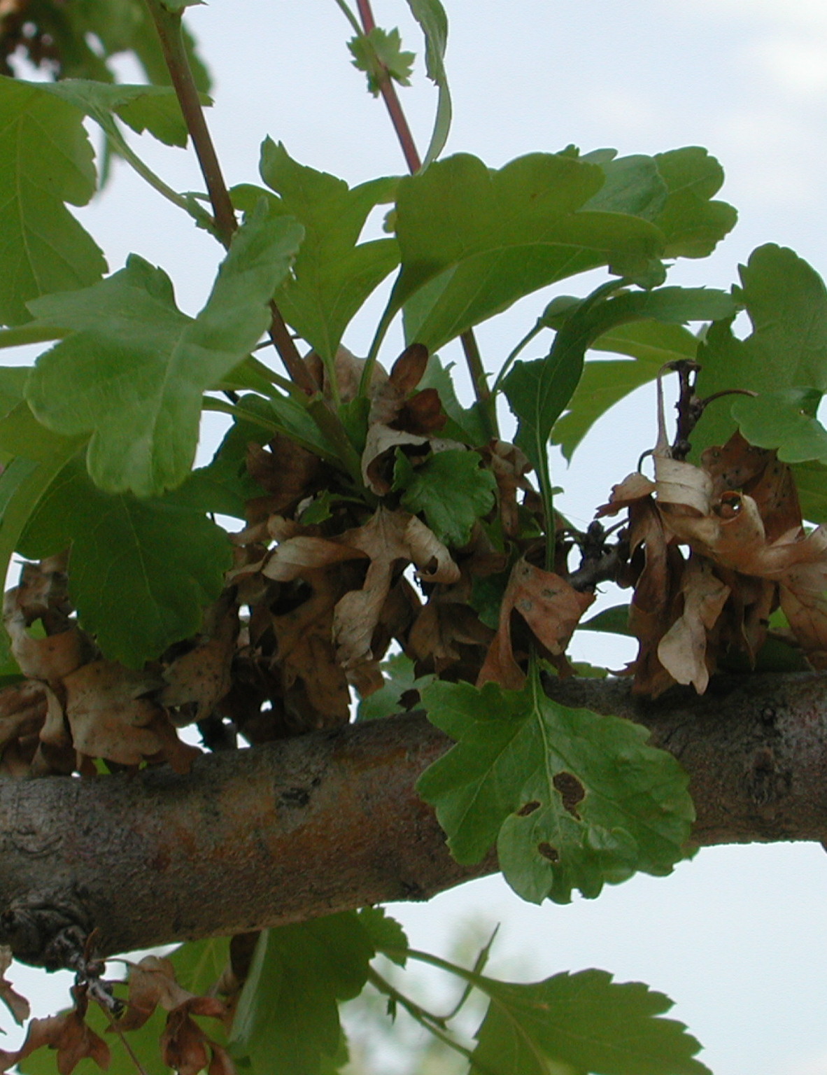 - Dark brown blighted branches