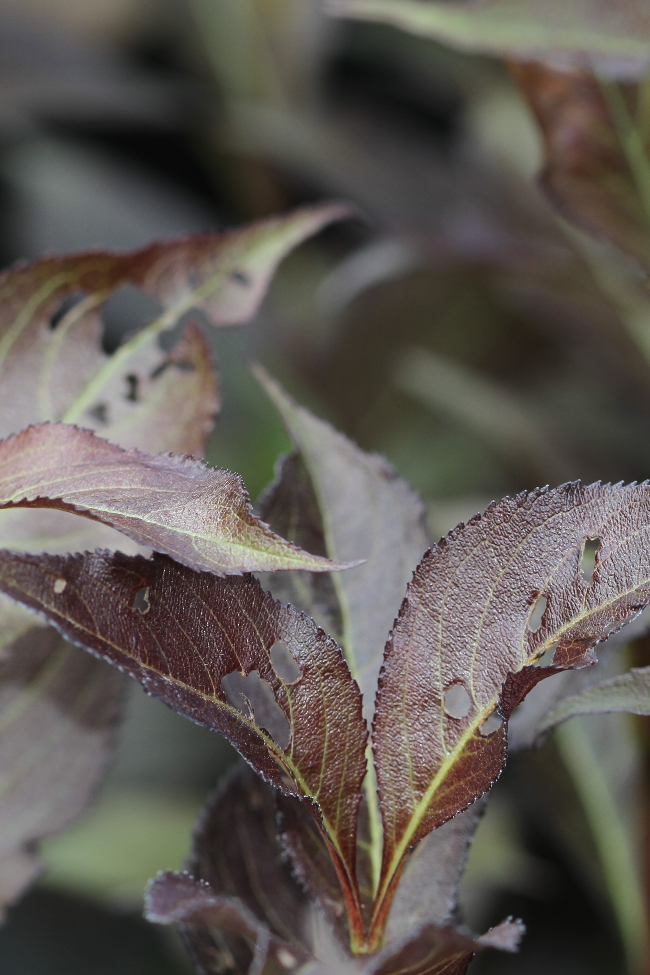 - Holes between veins in leaves