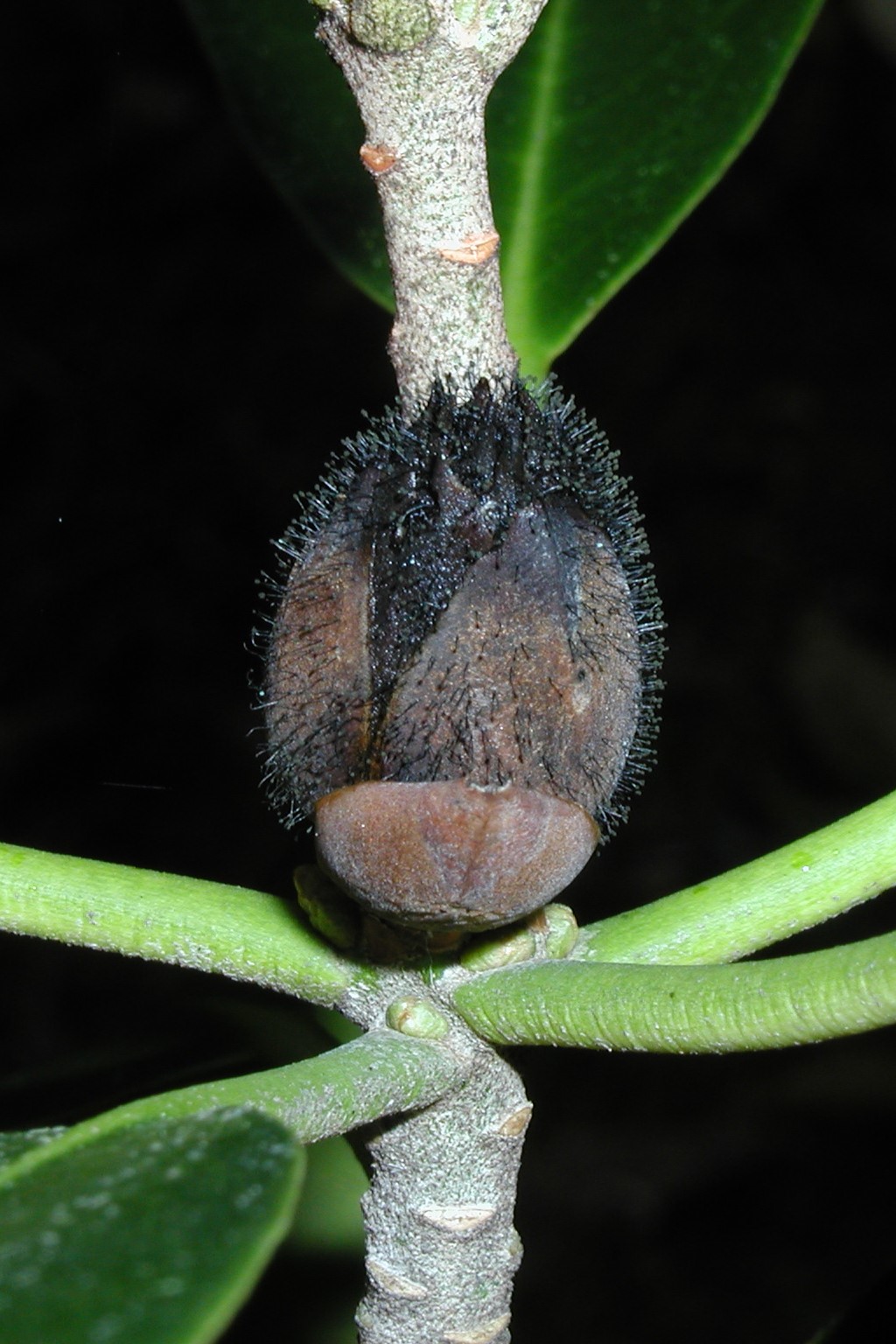 Flower buds turn brown and fail to open in the spring. They are later covered by black fruiting structures that look like pin cushions.