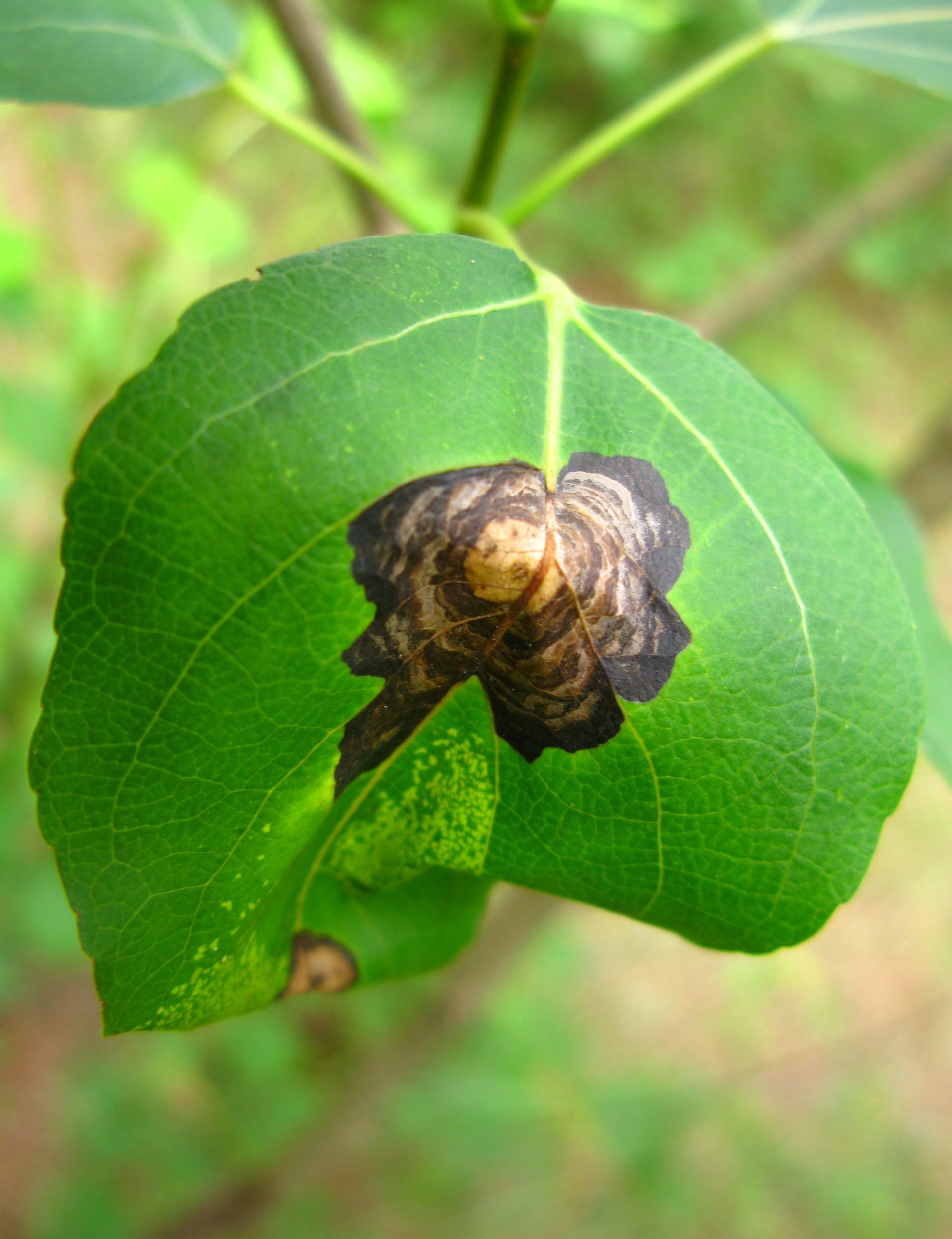 Marssonina overwinters in the cankers (stem spots) it forms on small stems. Spores are produced in the spring and summer when temperatures increase and rain is frequent. Spore release and infection is highly dependent on wet leaves caused by rain, dew, irrigation, or even high humidity under warm conditions. Marssonina leaf spot rarely causes long-term damage to its host. Severe infections may result in defoliation or a poor flush of leaves the following spring.