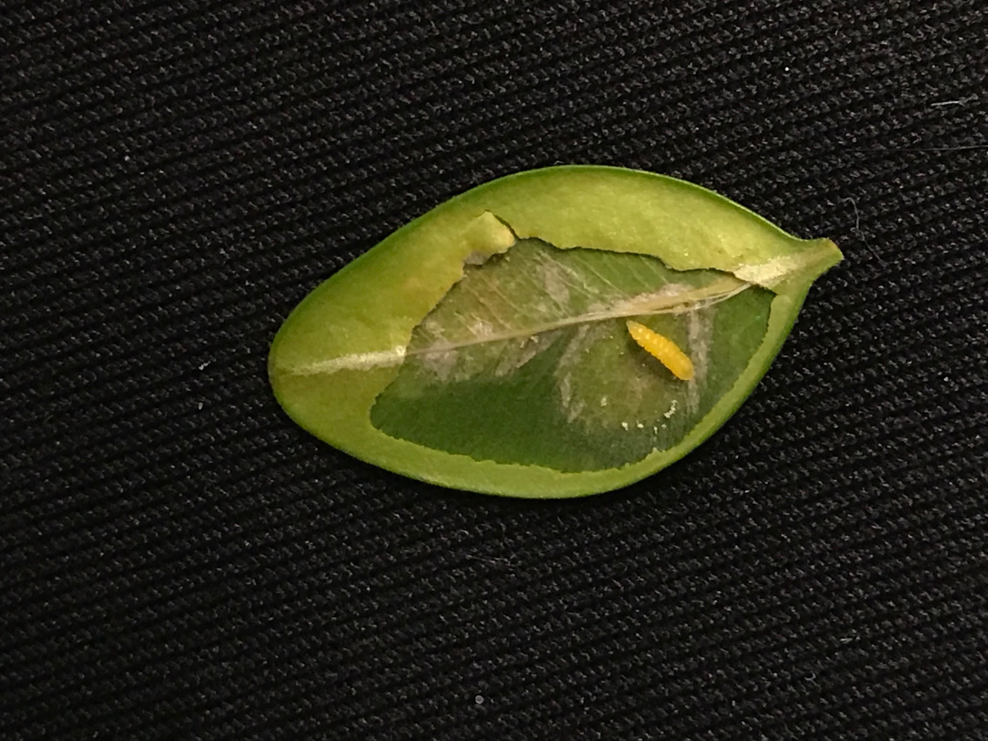 Leaf miners winter inside leaf mines in leaves. In late May adults gnats emerge from leaves to lay eggs into leaf surfaces. Eggs hatch into orange maggots that cause plants to produce bumps between the upper and lower leaf surfaces. Larvae feed all summer until fall.