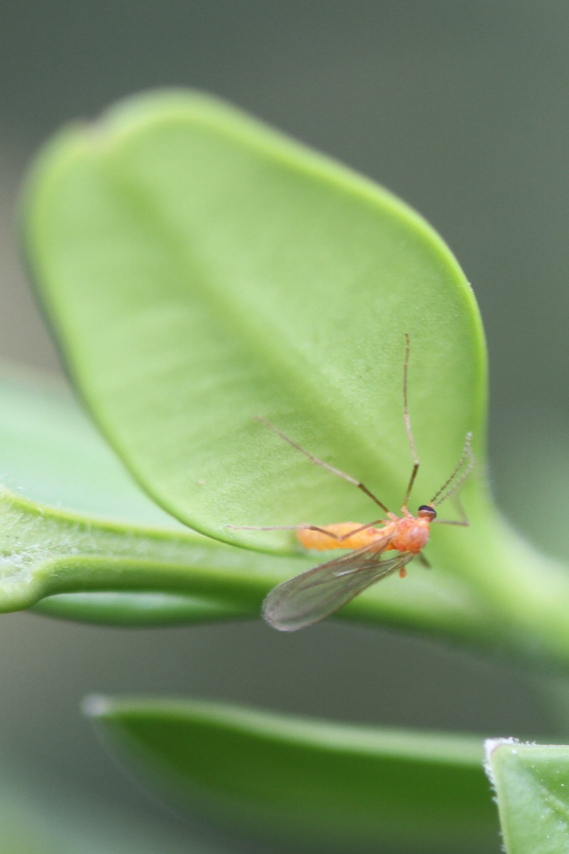 The best control is achieved with a foliar application of systemic insecticide (Abamectin, Acephate, Dinotefuran, Imidacloprid) when adults are flying and laying eggs on tender leaves. This normally occurs when Weigela shrubs are in bloom. Abamectin applications have the added advantage of being effective against boxwood spider mite. If this timing is missed, larvae can be killed inside leaves through mid-July with an application of Imidacloprid or Dinotefuran. Although soil-applied neonicotinoids (eg dinotefuran, imidacloprid) can kill boxwood leaf miners, they are recommended only for cleaning up heavy infestations because they can cause problems with spider mites. The neonicotinoids are usually not a significant risk to pollinators because they are not a rich source of pollen and nectar. Note that the other insecticides listed will only kill adults during flight, and are less effective than the systemic insecticides. Most common and little leaf boxwoods (Buxus sempervirens, and B. microphylla) are susceptible to this insect. Some varieties of B. sempervirens are resistant to this pest including, 'Pendula,' '‘Suffruticosa,' 'Handworthiensis,' 'Pyramidalis,' 'Argenteo-varigata' and 'Varder Valley'.