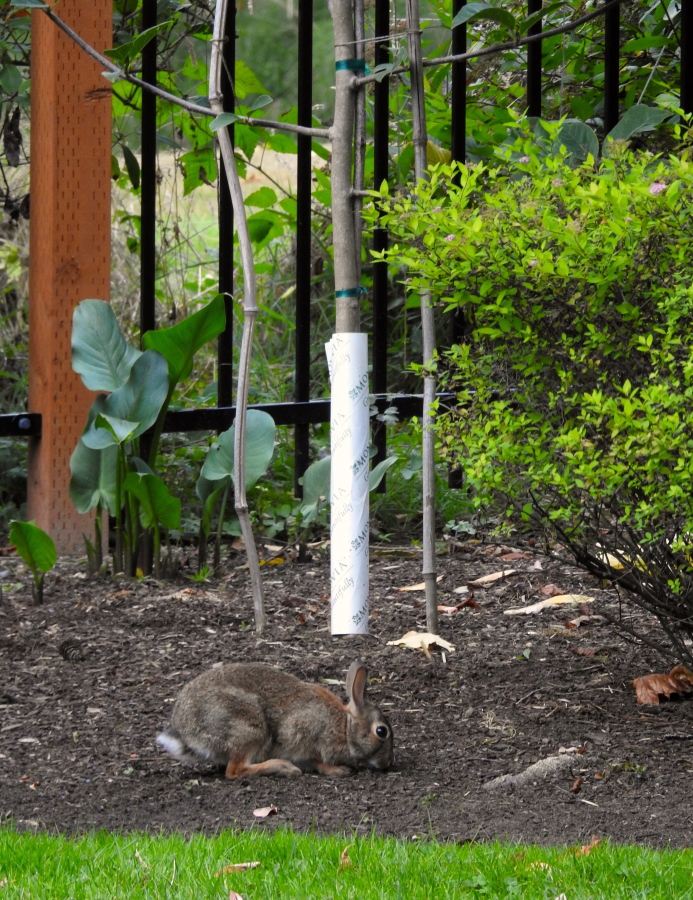 Use fencing or plant guards to protect susceptible shrubs from destructive animals. Avoid tight fitting guards because they can increase damage caused by boring insects and canker pathogens. Products containing putrescent egg solids are effective in repelling deer for a short time but should not be used where people may be exposed to the terrible smell. Remove weeds and keep grass mowed low; this limits hiding places for small animals. Maintain mulch levels at 2-3 inches and avoid excessive mulch levels and volcano mulching which provides habitat for rodents. The standard prevention method is to surround trunks with an exclusion zone made of ΒΌ-inch metal mesh or hardware cloth. To protect against vole damage, wrap shrub trunks with 24-inch wide mesh hardware cloth being sure to bury the mesh six inches below the soil surface. To stop rabbits from gnawing on bark, be sure to wrap the metal mesh to above the snowline. You may need to adjust the height of the mesh throughout the winter as more snow falls. Pocket gophers are probably the most destructive and lethal to shrubs. Shrub protection should begin at planting, with hardware cloth surrounding the hole where the shrub is planted. In some states, pocket gophers are a species of conservation concern due to loss of native grassland habitat. Therefore, caution should be taken in the control of their populations.