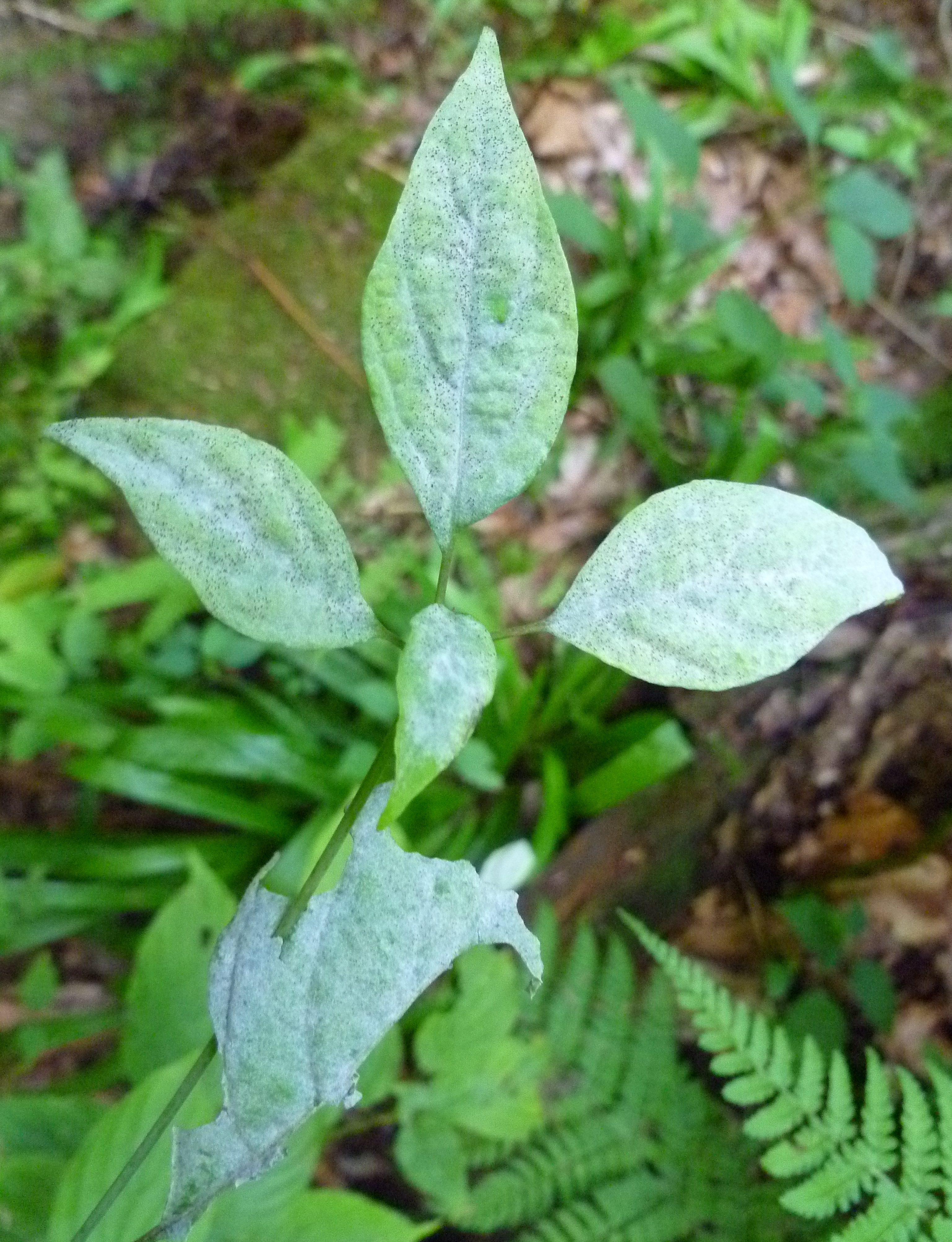 In the spring, spores are windblown to newly emerging, susceptible leaves. Successful infection results in the fungus producing thousands of spores per lesion, capable of causing repeated infections. The coating of spores that develops on plant surface gives the leaf a characteristic white to light gray dusting. Powdery mildew is most prevalent during cooler temperatures and high humidity or extreme dryness. Powdery mildew pathogens are one of the only foliar pathogens that can infect in the absence leaf wetness. We see increased levels of powdery mildew in the spring and fall of the year in the Midwest.