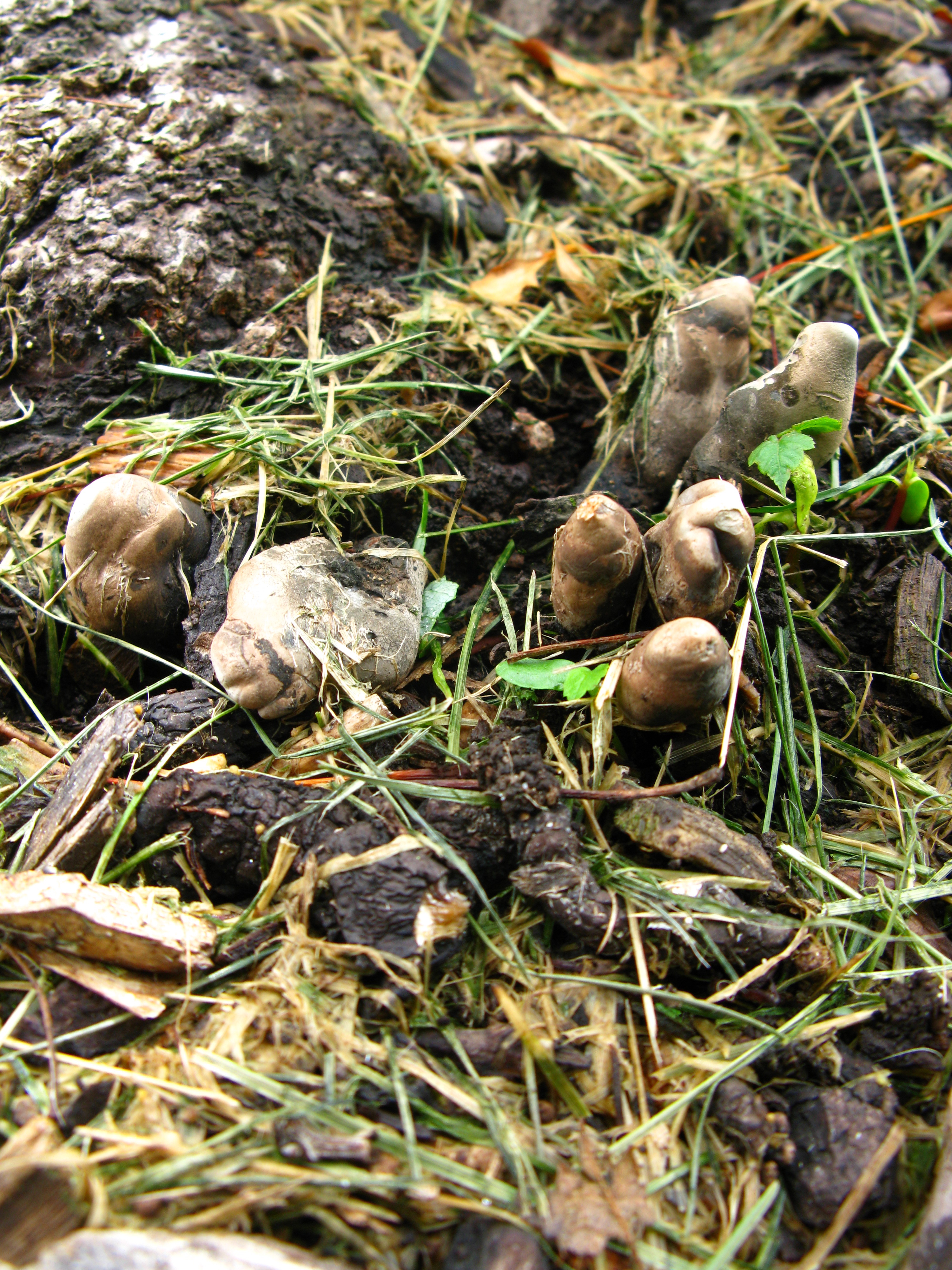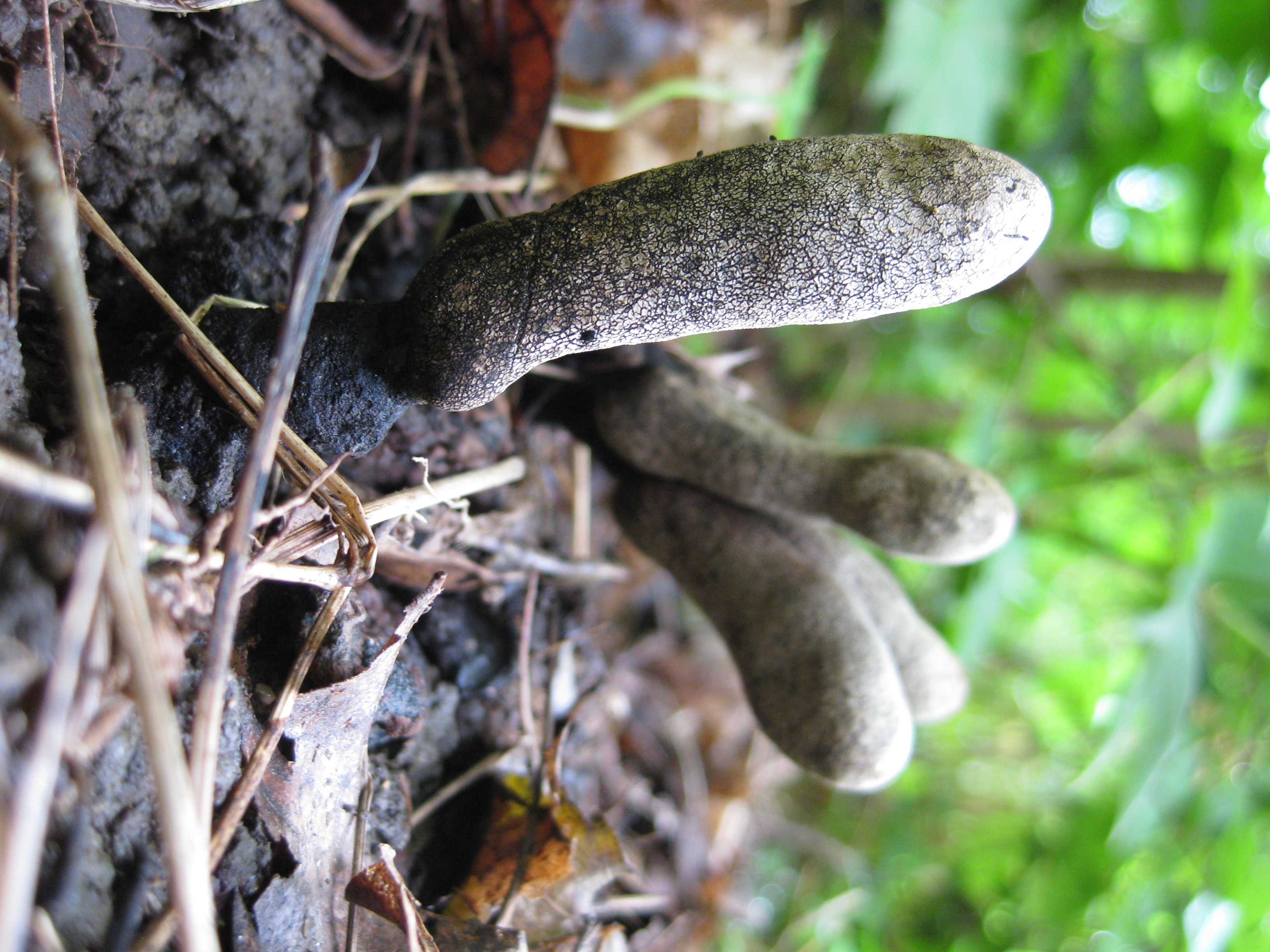 Xylaria polymorpha is an opportunistic fungus that grows on dead wood, but will attack the stressed tree. It causes a soft rot that quickly damages and kills woody tissue and seems to prefer (but is not limited to!) maple, beech, oak, honey-locust, sassafras, elm, and apple. However, it is sometimes encountered just growing in mulch.