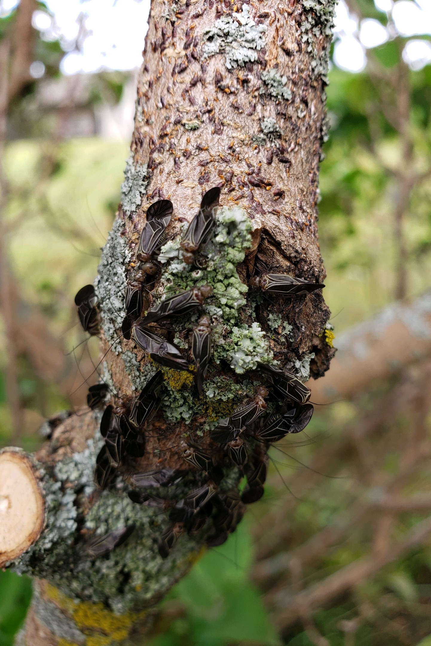 Although this group of insects does not damage plants and shrubs, it can cause concern when groups of them are found on the bark. Some species may produce unsightly webs. As these insects chew on bits of bark, fungi, lichen, and other organic matter, none harm their host plant. Cerastipsocus venosus adults can be 1/4 in long and have distinctive wings. Wingless immature stages are striped.