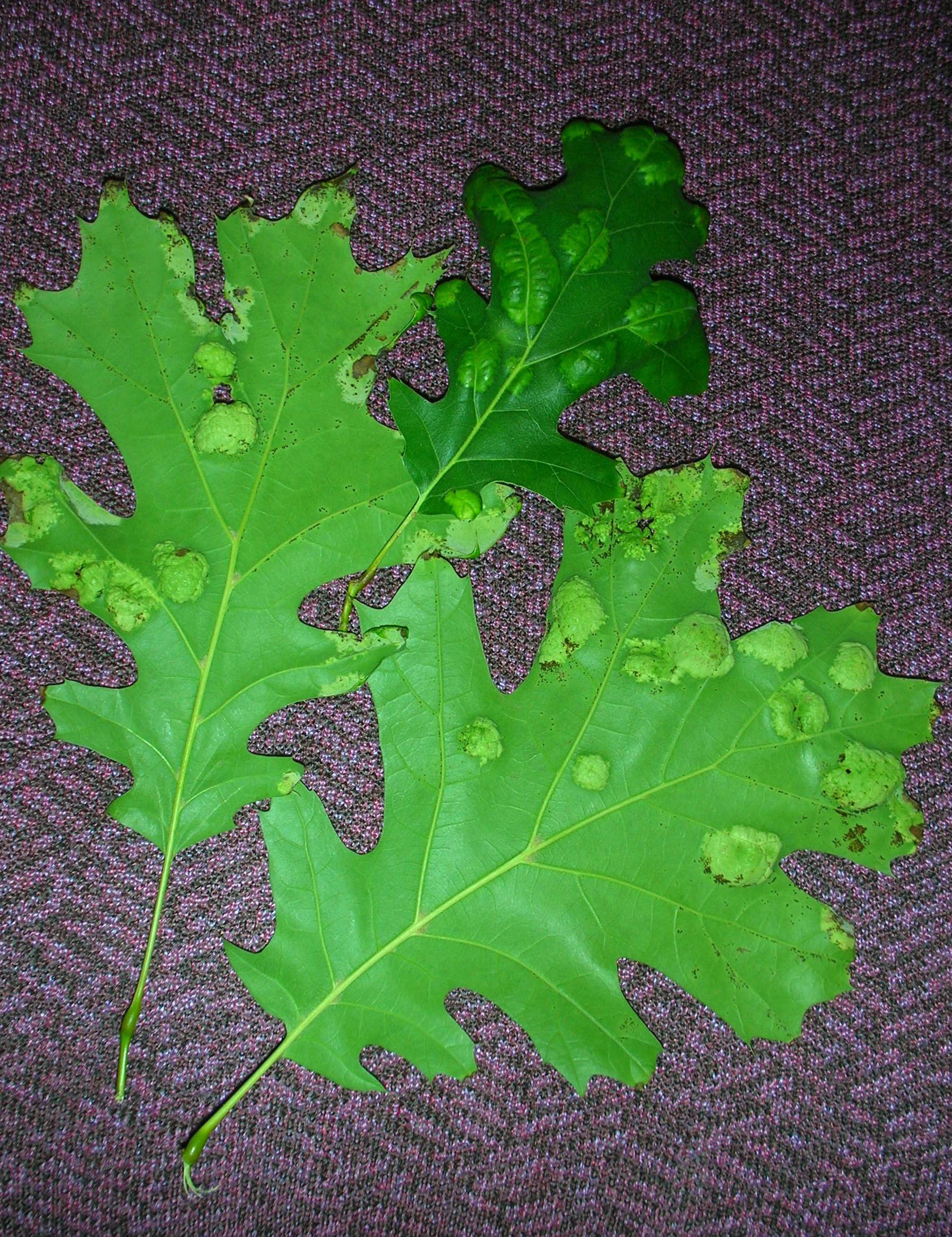 Taphrina infected tissues grow more rapidly than un-infected tissues. This causes small, white, green, or yellow blisters to form on young leaves. The blisters enlarge, become discolored, and occasionally die as the leaf develops. One side of each blister is covered with a light, powdery fungal growth.