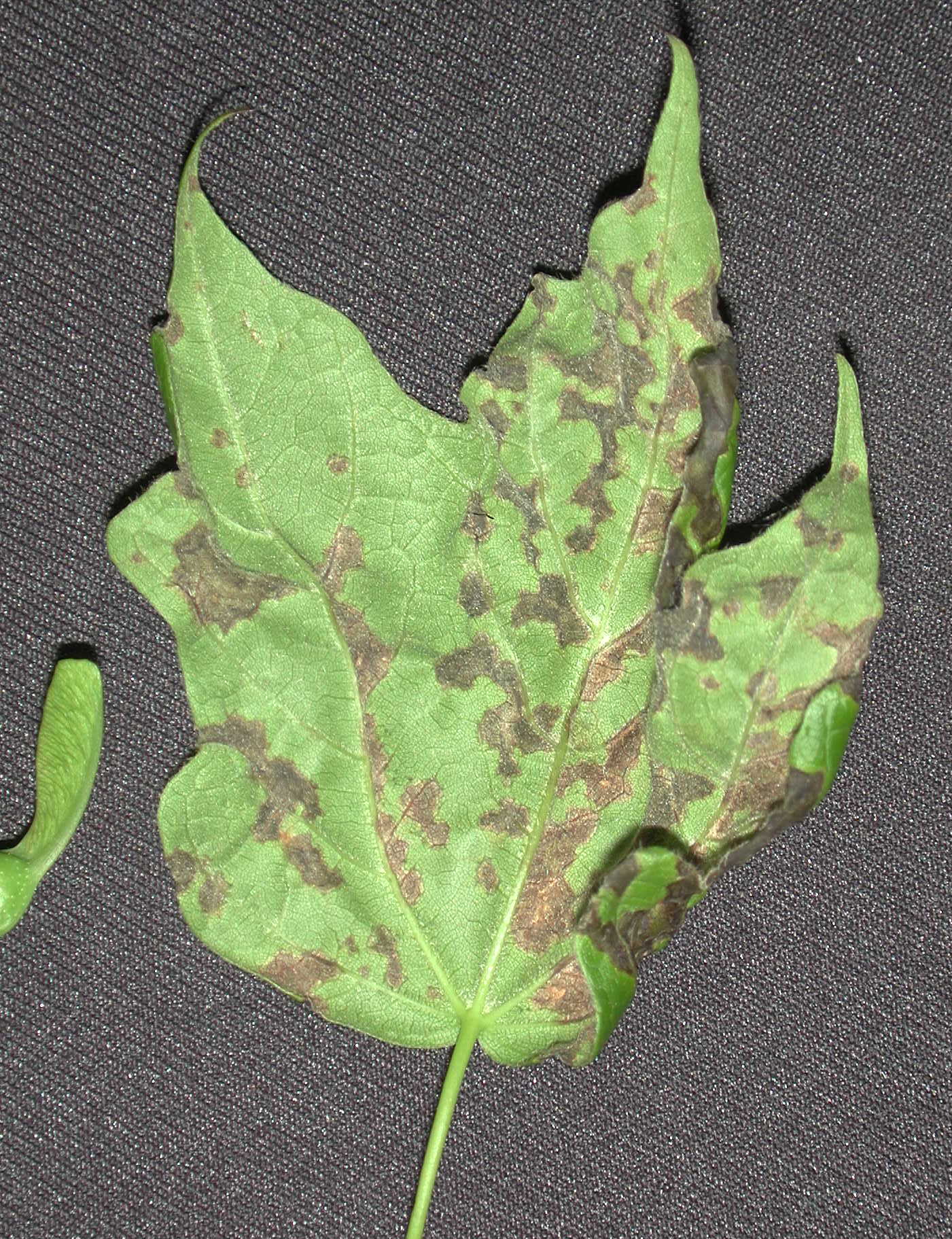 Cool, moist conditions are required for infection. Taphrina only infects young emerging leaf tissue in the spring. New spores are formed on the surface of the spots are blown to new buds where they remain dormant until the next spring. These spores stick to new leaves as they emerge. The fungus has only one infection period in the spring and does not continue to cause new spots later during the growing season.